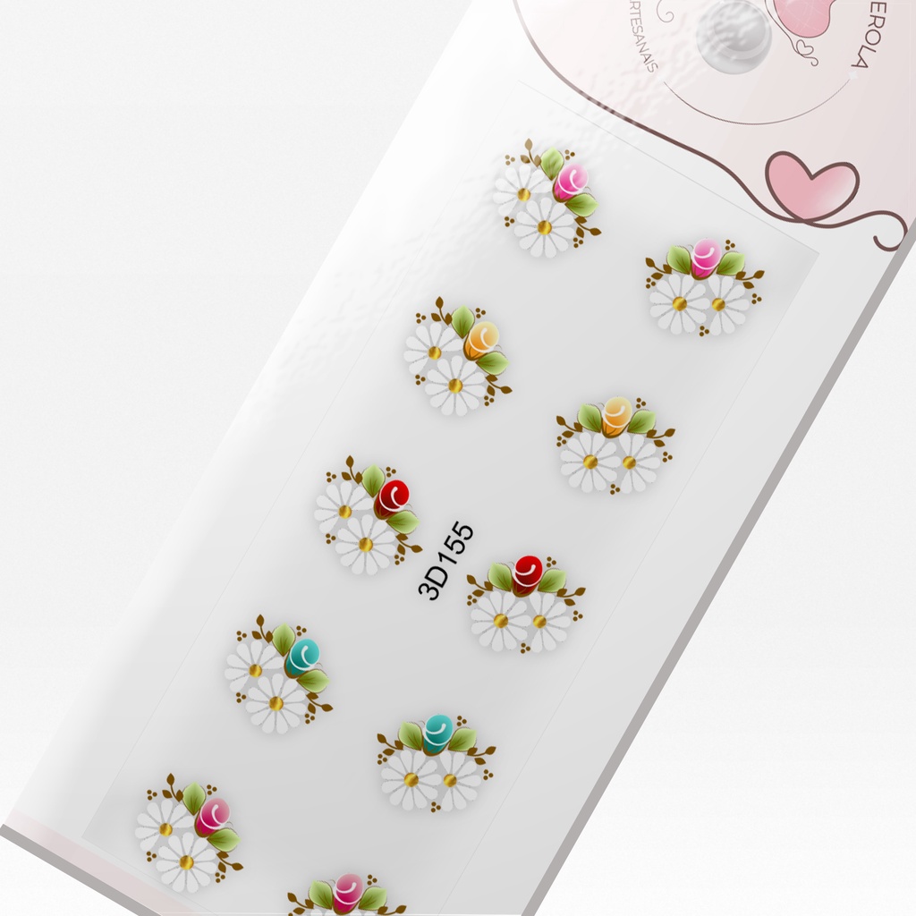 Adesivo 3D para Unhas-Margaridas Mistas-3D 155