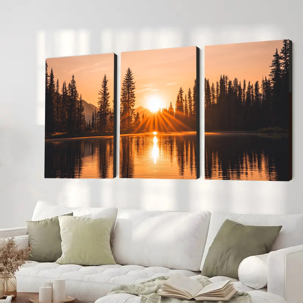 Quadro Decorativo Luz no Lago Florestal 3mm MDF Mosaico Sala Quarto Escritório Impressão Em Hd