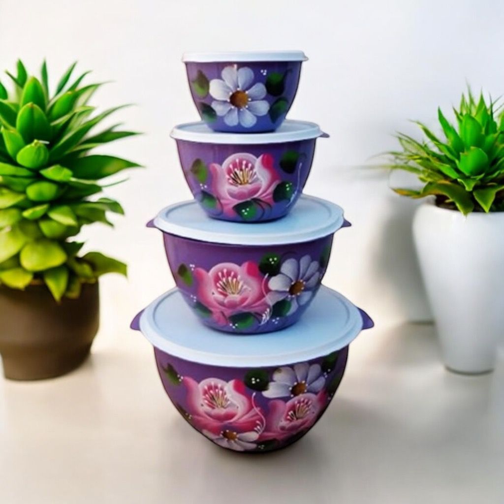 CONJUNTO BOWLS DECORADO 2 KIT COM 4 POTES REDONDO