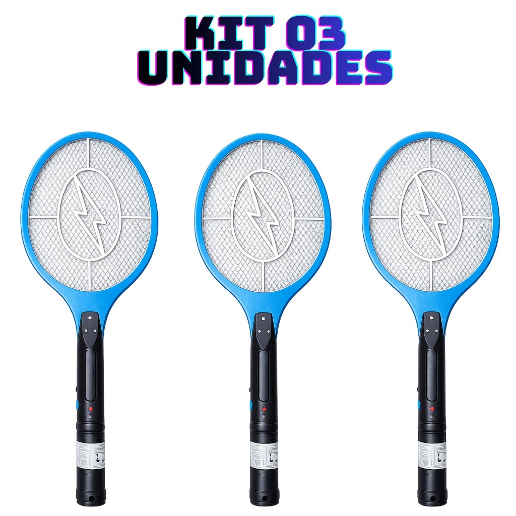 Kit Raquete Elétrica 1, 2 ou 3 Raquete Elétrica Bivolt Recarregável