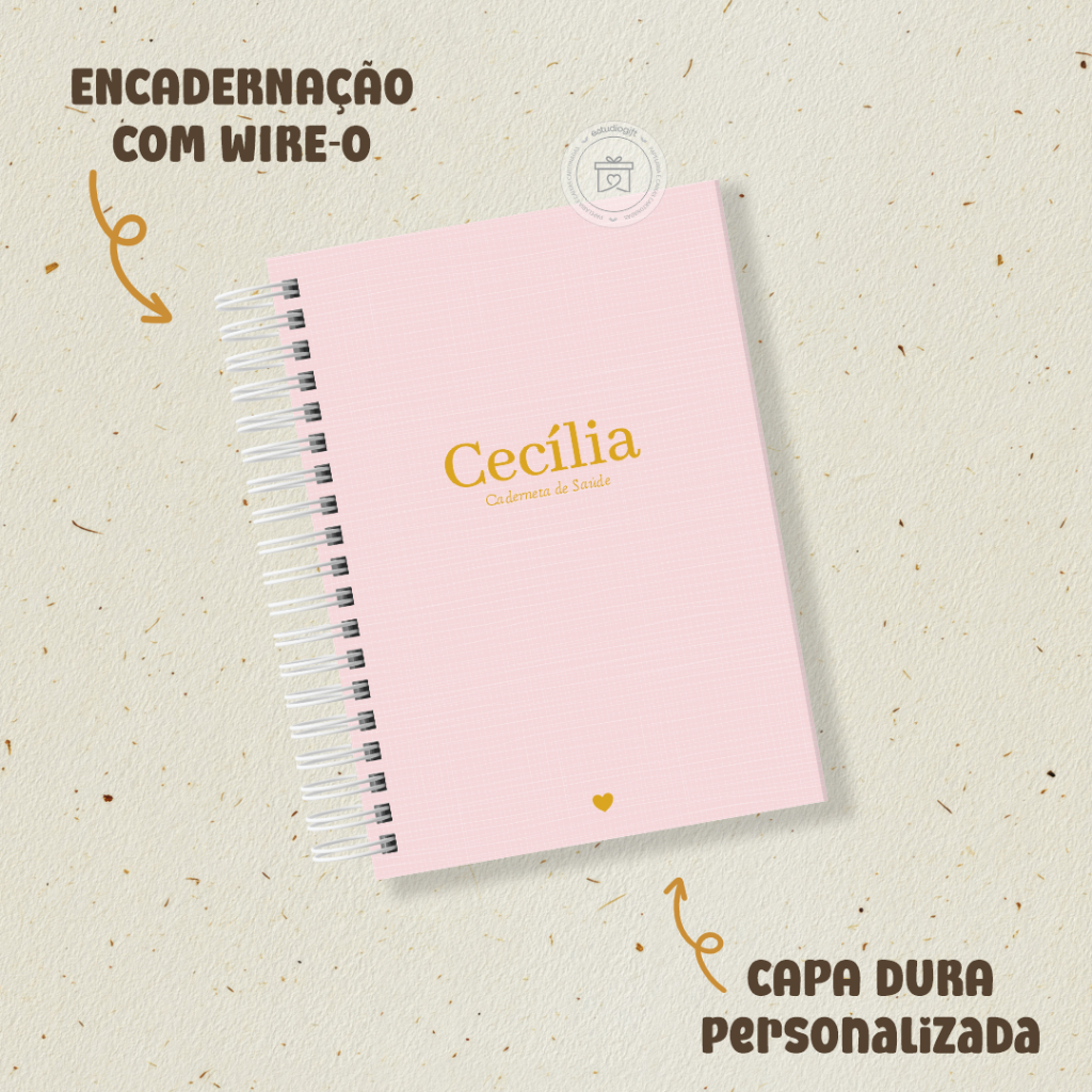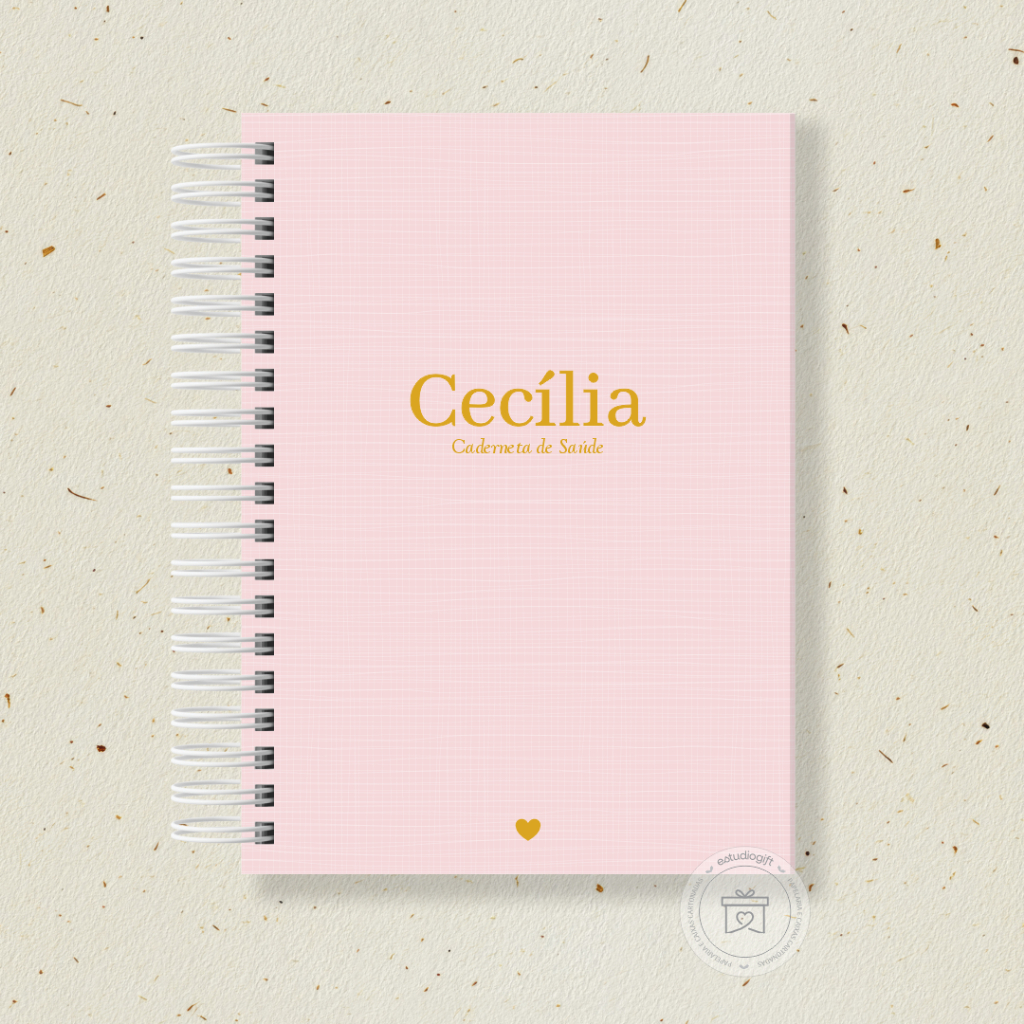 CADERNETA DE VACINAÇÃO SAÚDE CLÁSSICA LINHO FAKE ROSA - PERSONALIZADA COM NOME DO BEBE