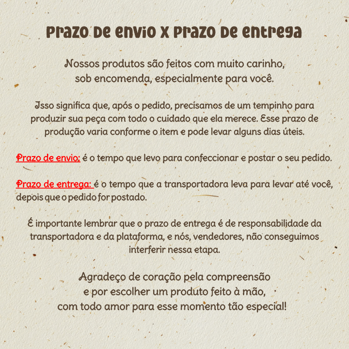 Sob encomenda: envio após 3 dias da compra