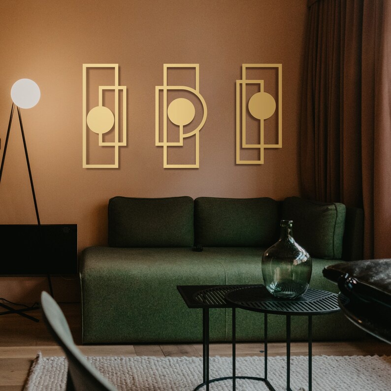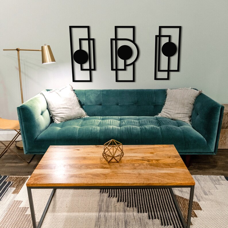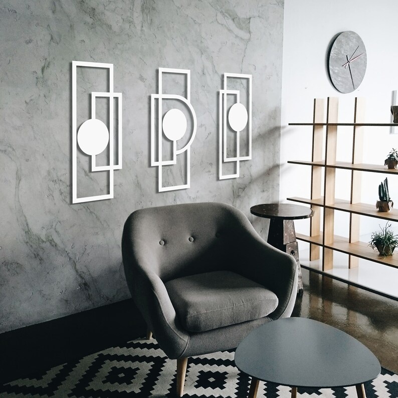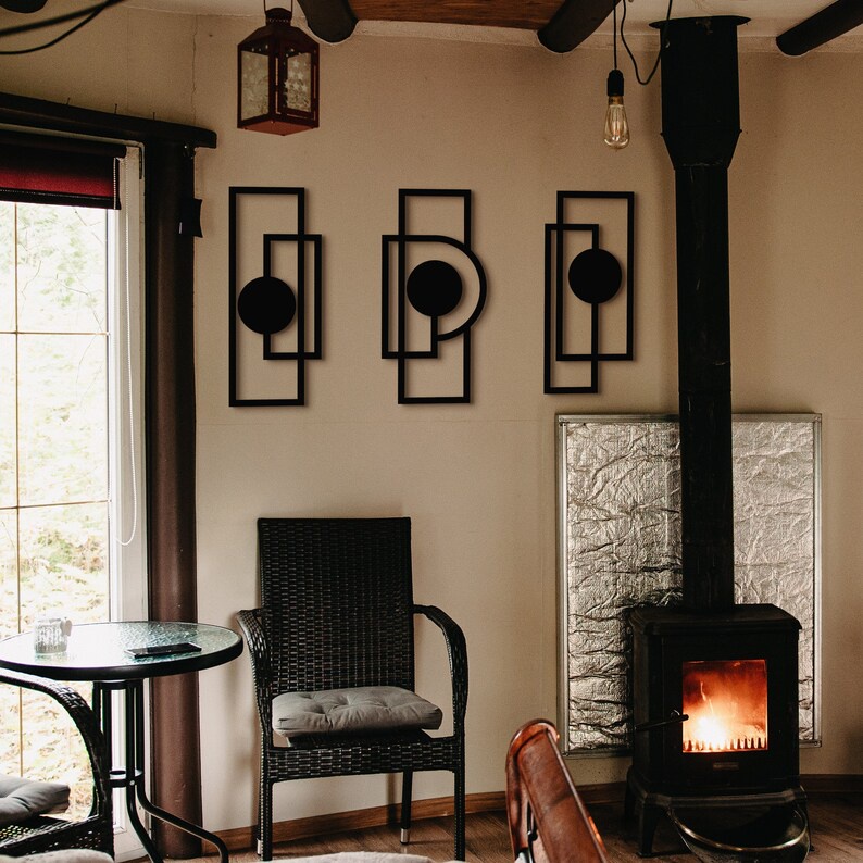 Trio Aplique de Parede vazado Mdf Preto Arte geométrica minimalista quadro decorativo
