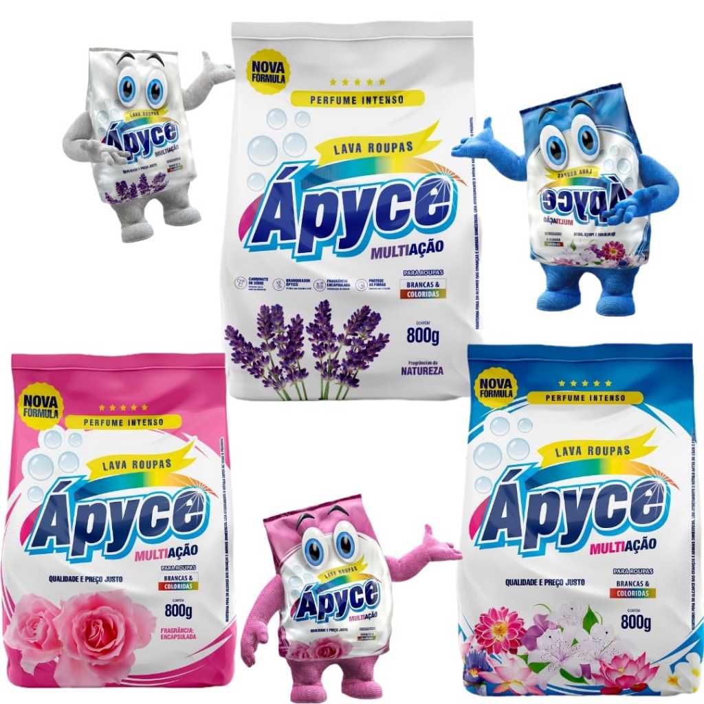 Kit 1 Porta Sabão + 4 Lava Roupas em Pó Sabão em Pó Apyce 800gr