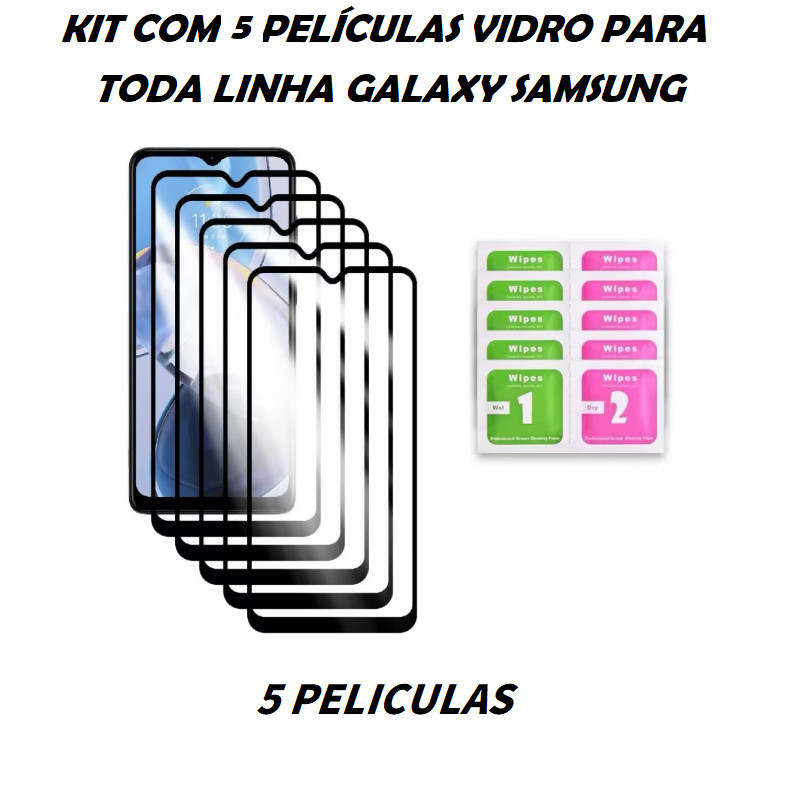 Kit com 5 PelículaS 3d para Toda linha Sams Galaxy A15 A13 A16 A36 A56 S20Fe S23 S24 S25 S25 Ultra A32 M51 M52 M54 M55