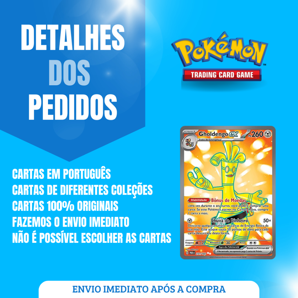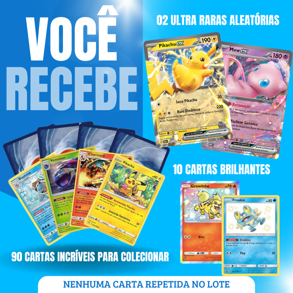 100 Cartas Pokémon 10 Brilhantes e 2 Ultra Raras Nenhuma Repetida Originais Pokémon Português
