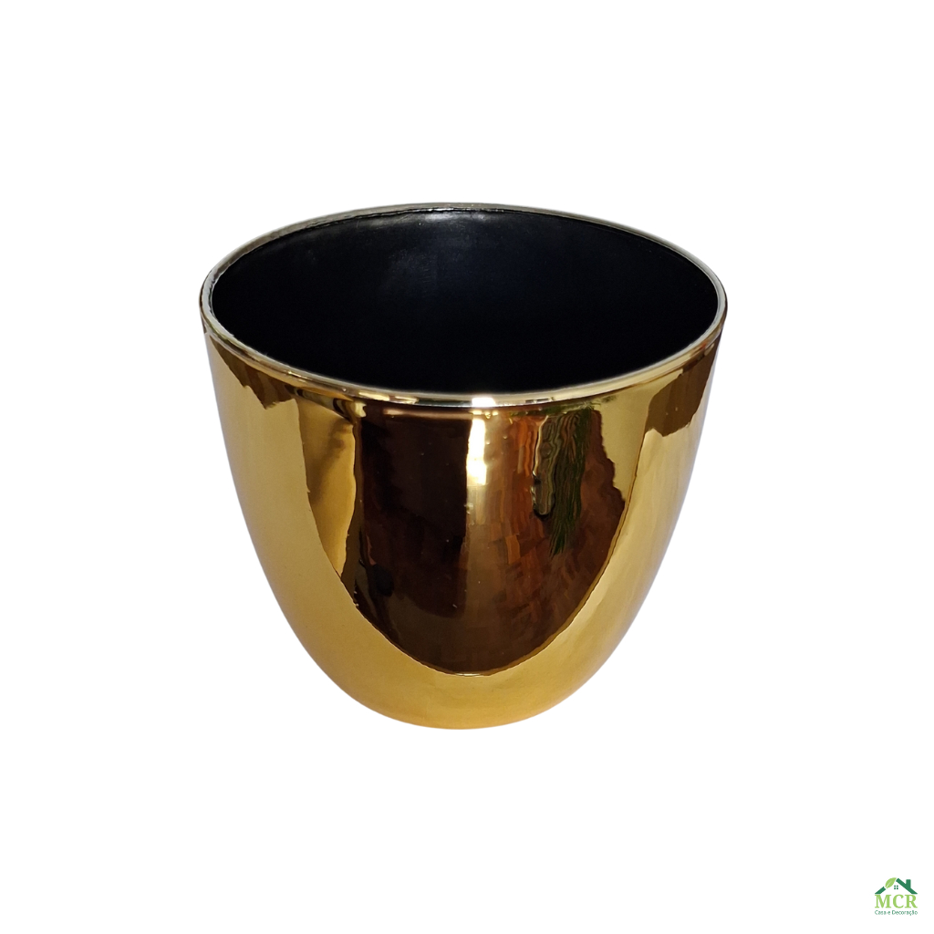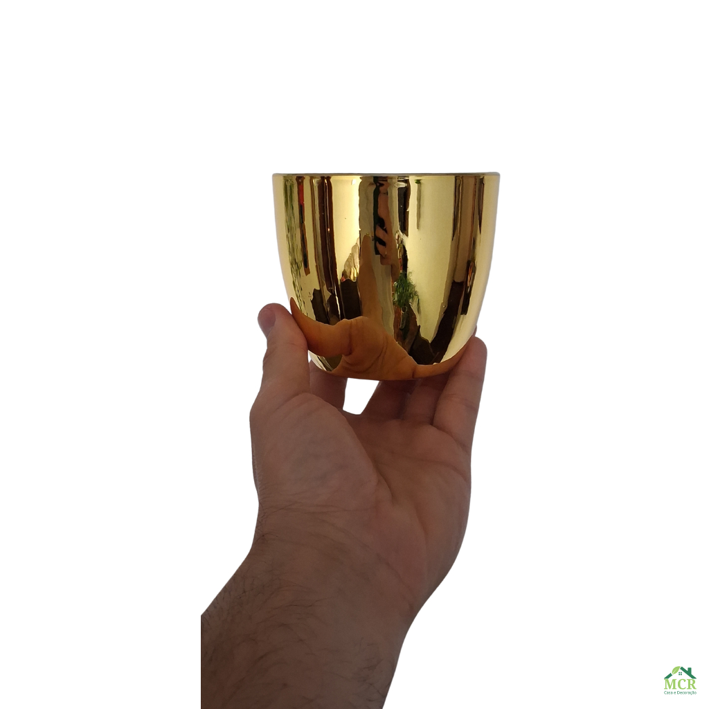KIT 2 Cachepot Vasos Decorativos de Plástico Dourado Redondo Liso para Arranjo, Flores, Plantas Artificiais e Suculentas