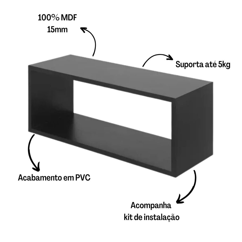 Kit 03 Nichos 50x25 MDF Sala Cozinha Decorativo Banheiro Quarto Salão Escritório Suporte Brinquedos