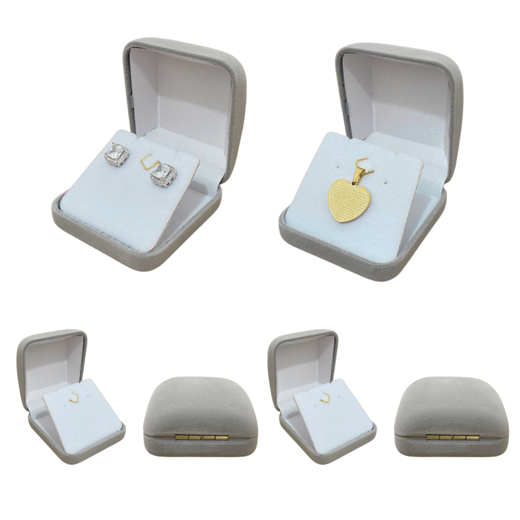 1 unidade caixinha estojo para colar brinco pingente veludo cinza com fecho de metal
