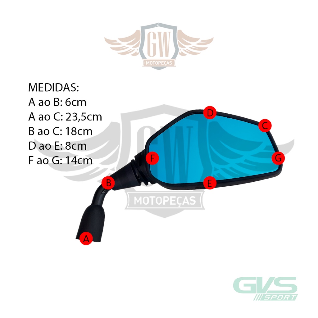 Retrovisor Rouser Gvs Honda Rebaixado Lente Convexa Azul