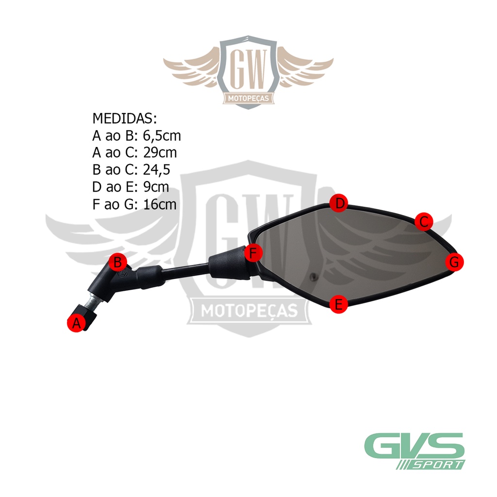 Retrovisor Gvs Mt 03 07 09 Giro 360° Yamaha Lente Convexa