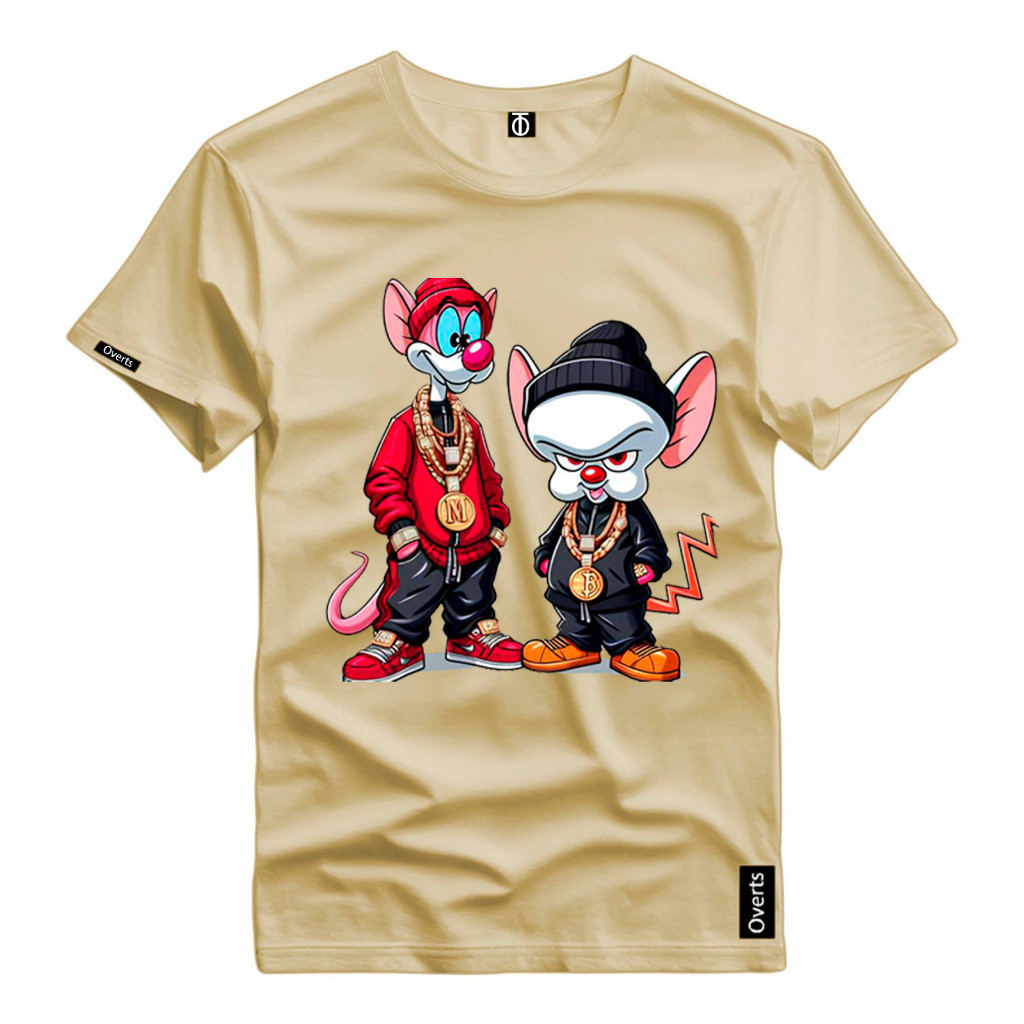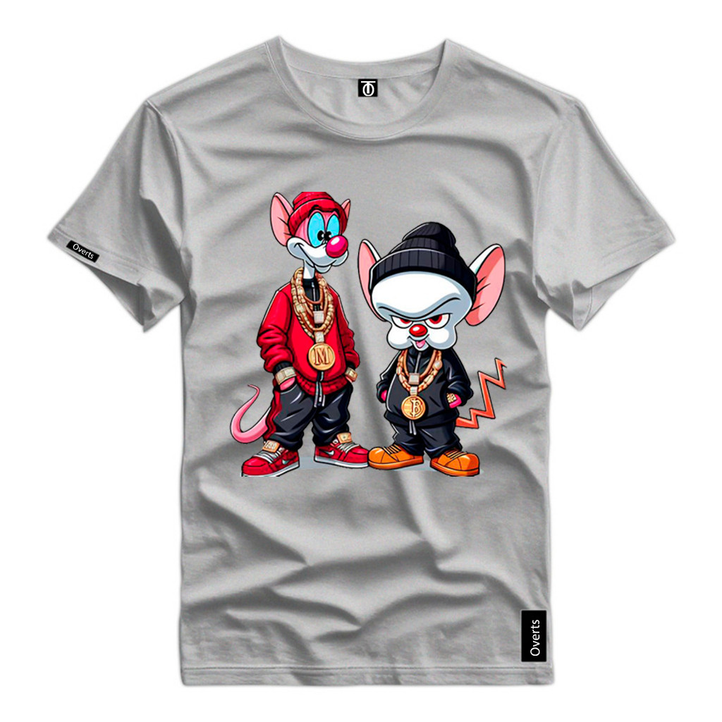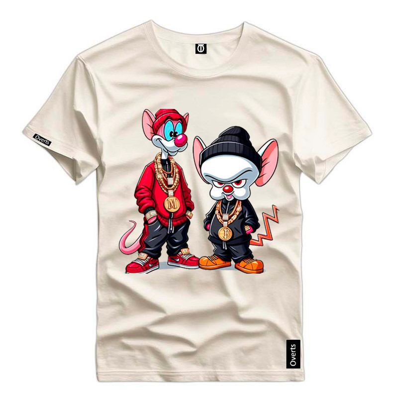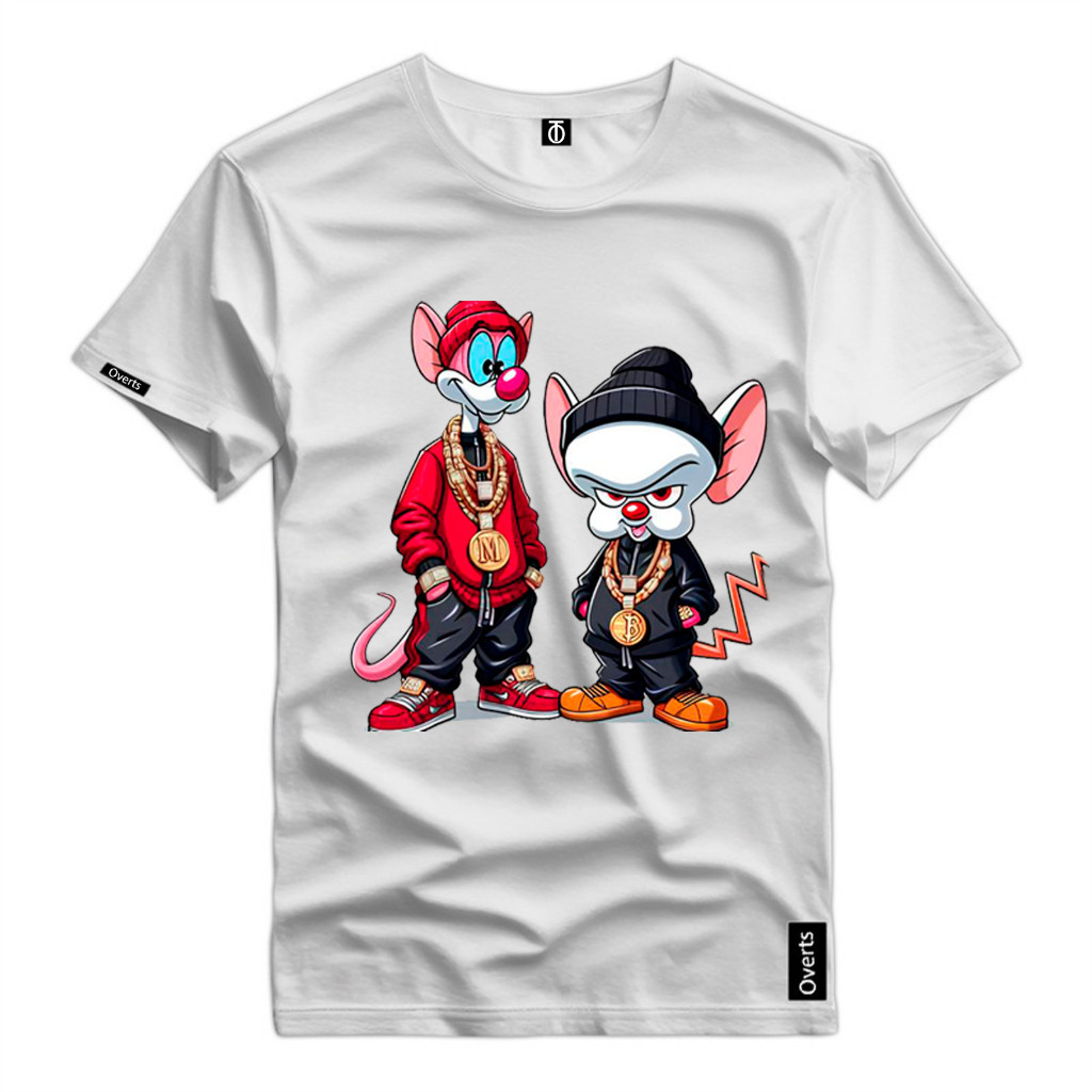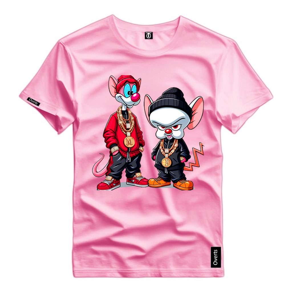 Camiseta Masculina Personalizada Pink e Cérebro Ratos Desenho 100% Algodão