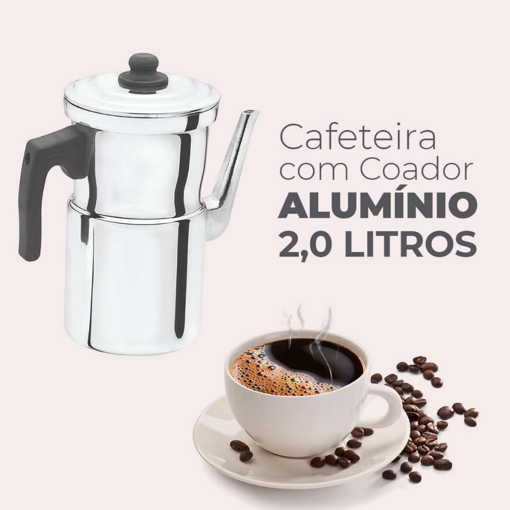 Cafeteira Polida C/coador 2,0 Litros Alumínio Fort-lar 2
