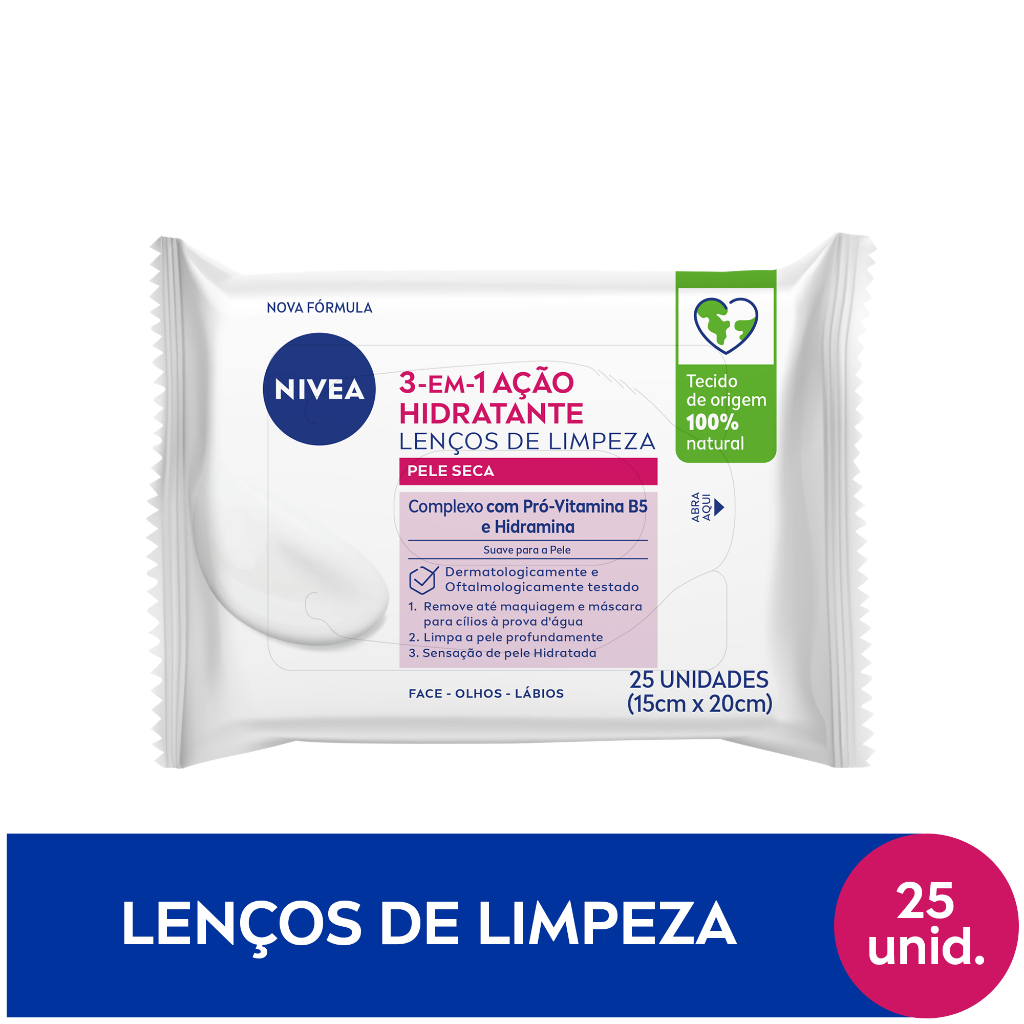 NIVEA Lenços de Limpeza Facial Ação Hidratante 3 em 1 - Pacote com 25 Unidades BBB 26