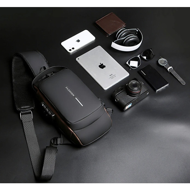 Bolsa Masculina Pochete Transversal Cadeado Ombro Impermeável Tecido Liso Antifurto Bolsa De Peito