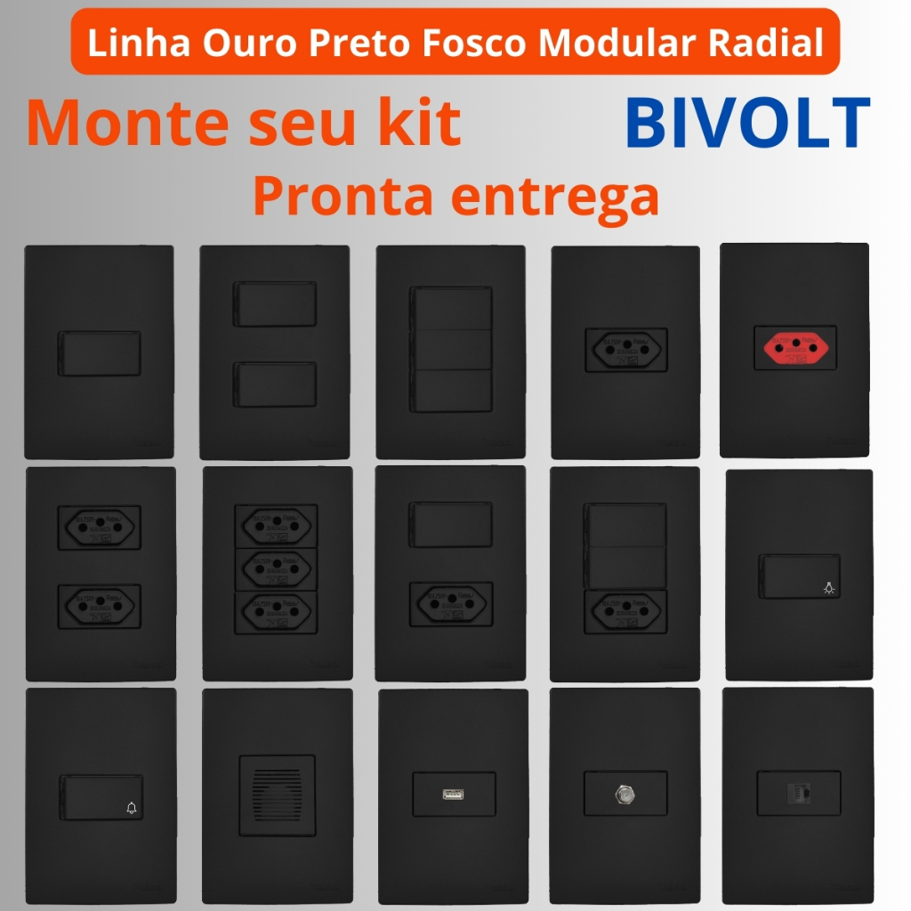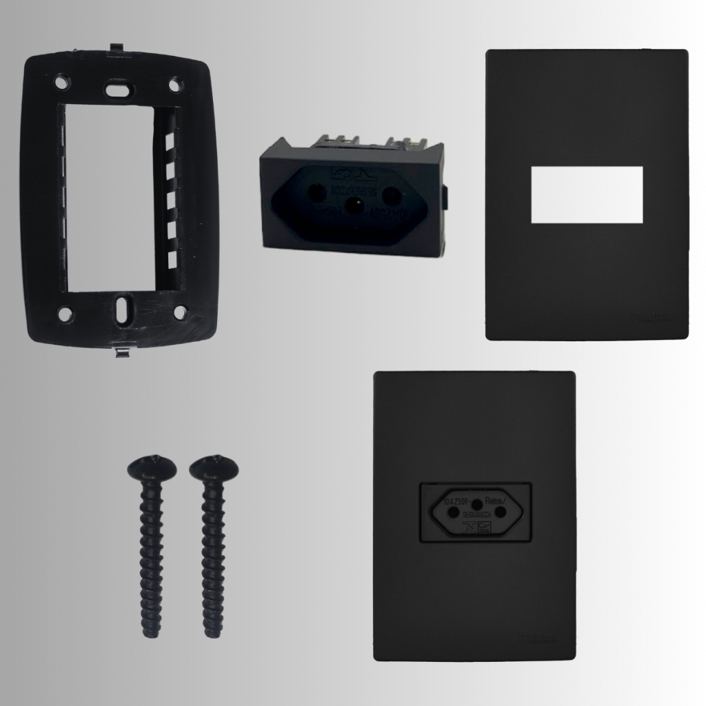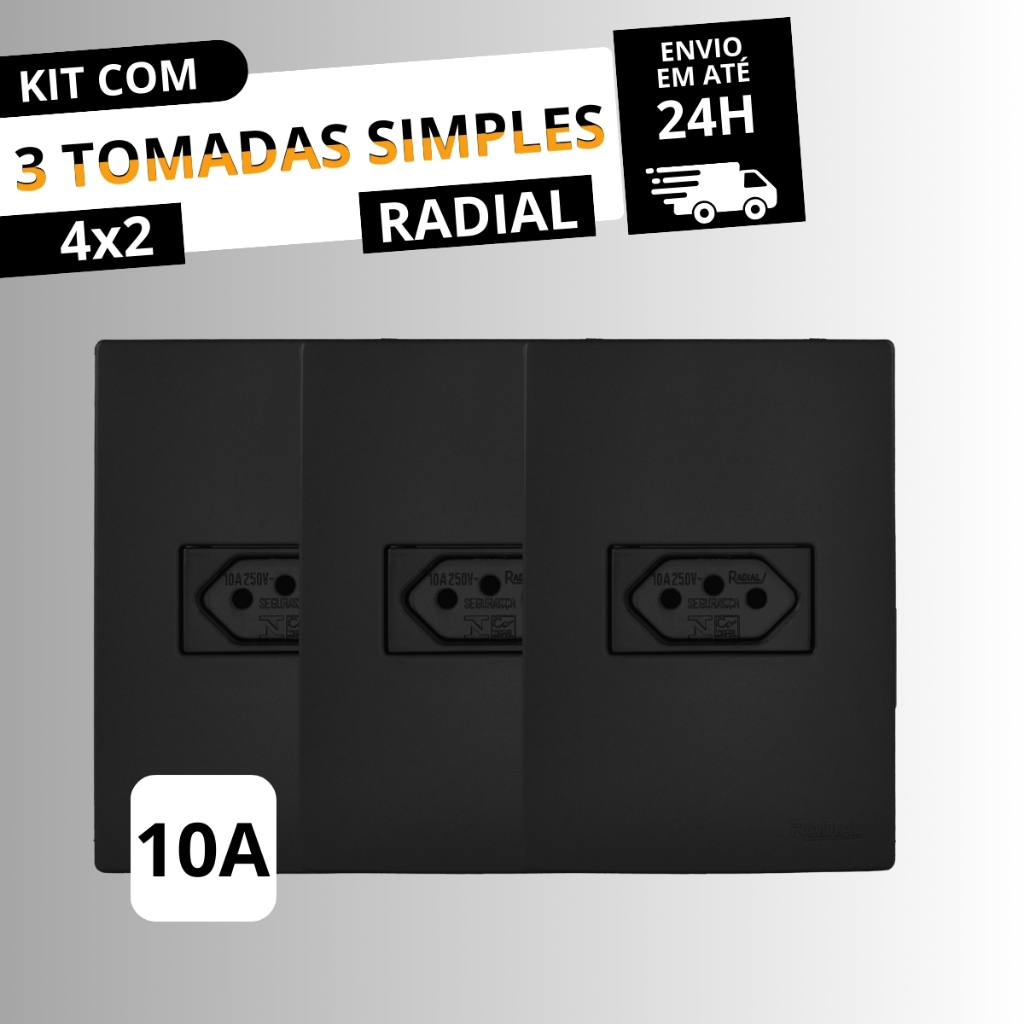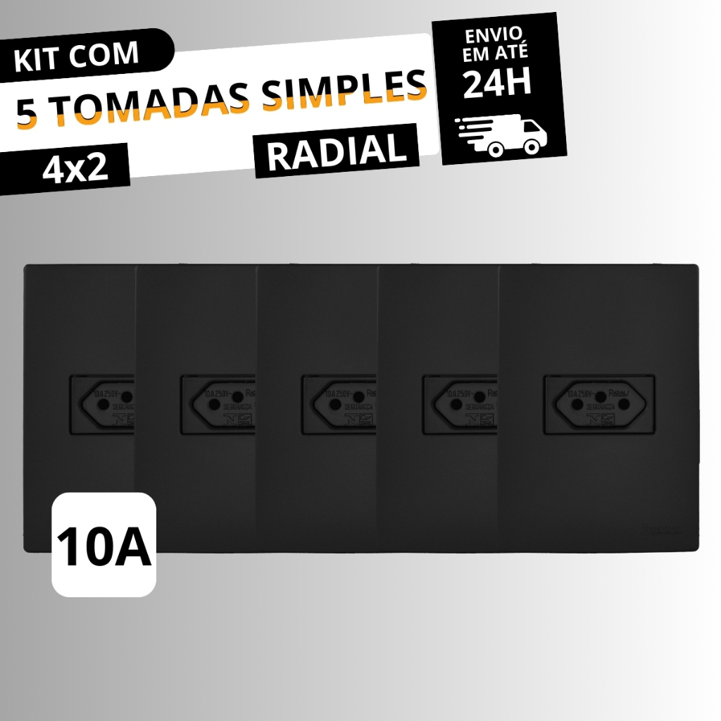 Kit 10 Tomadas Simples10A 4x2 Linha Ouro Preto Fosco RADIAL