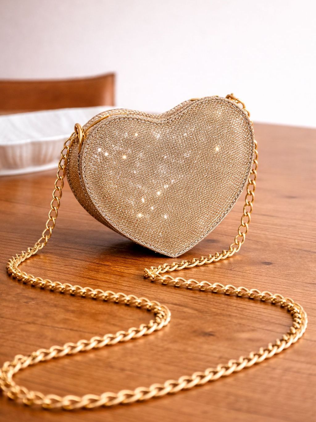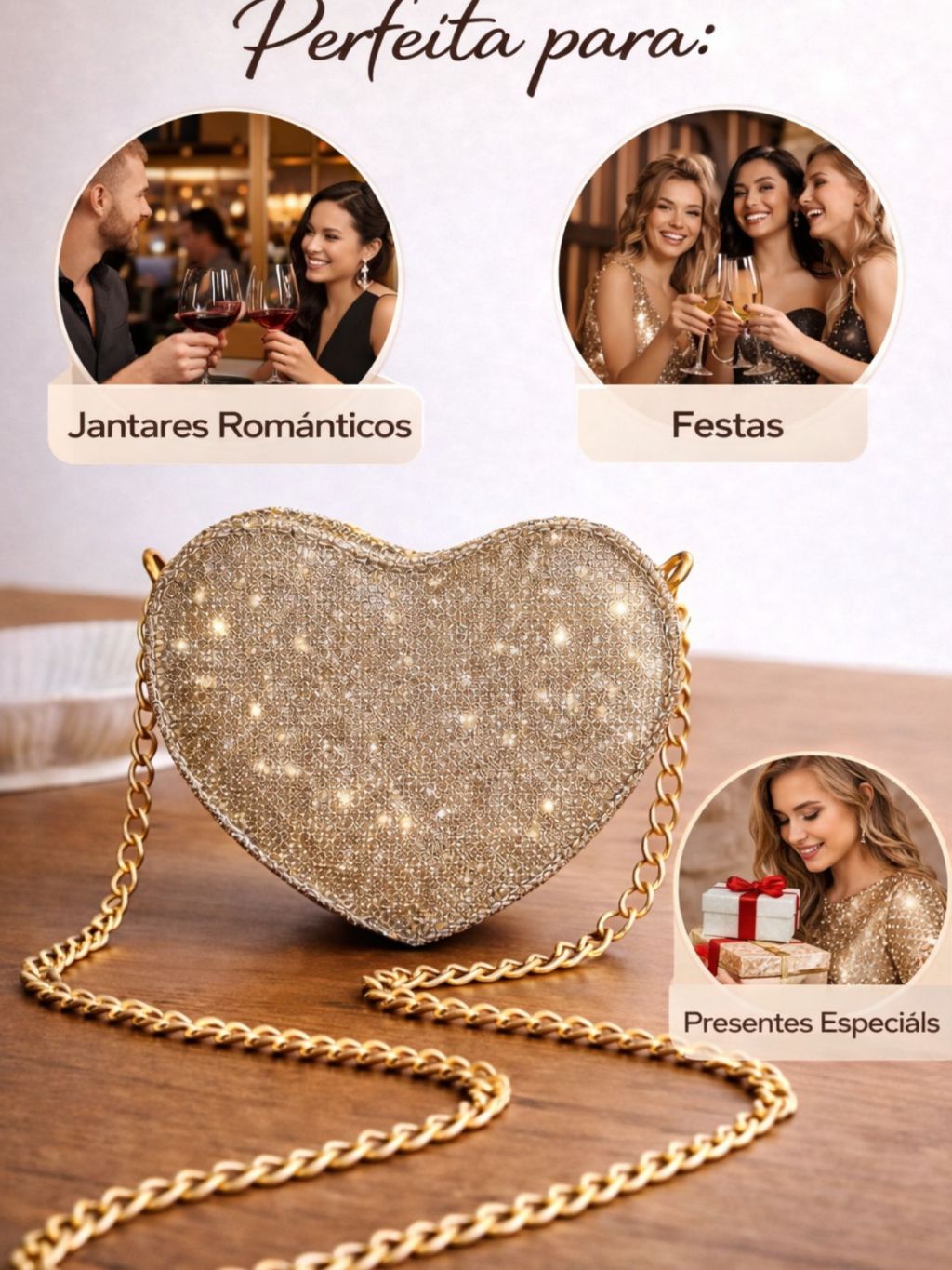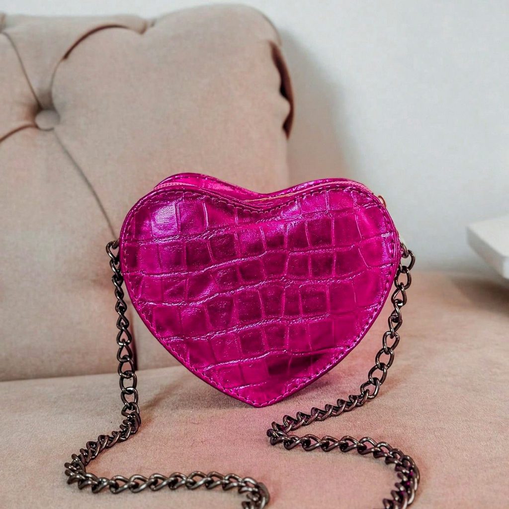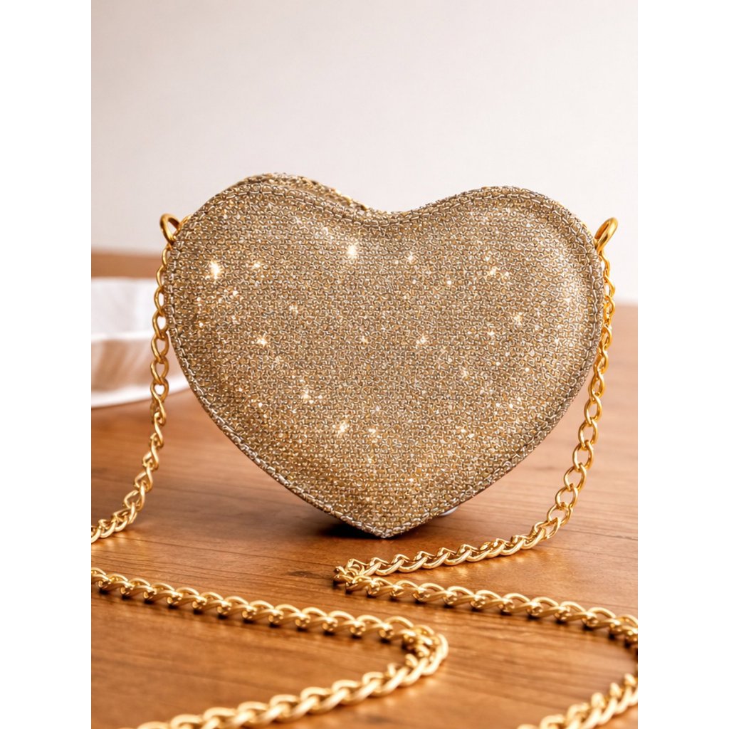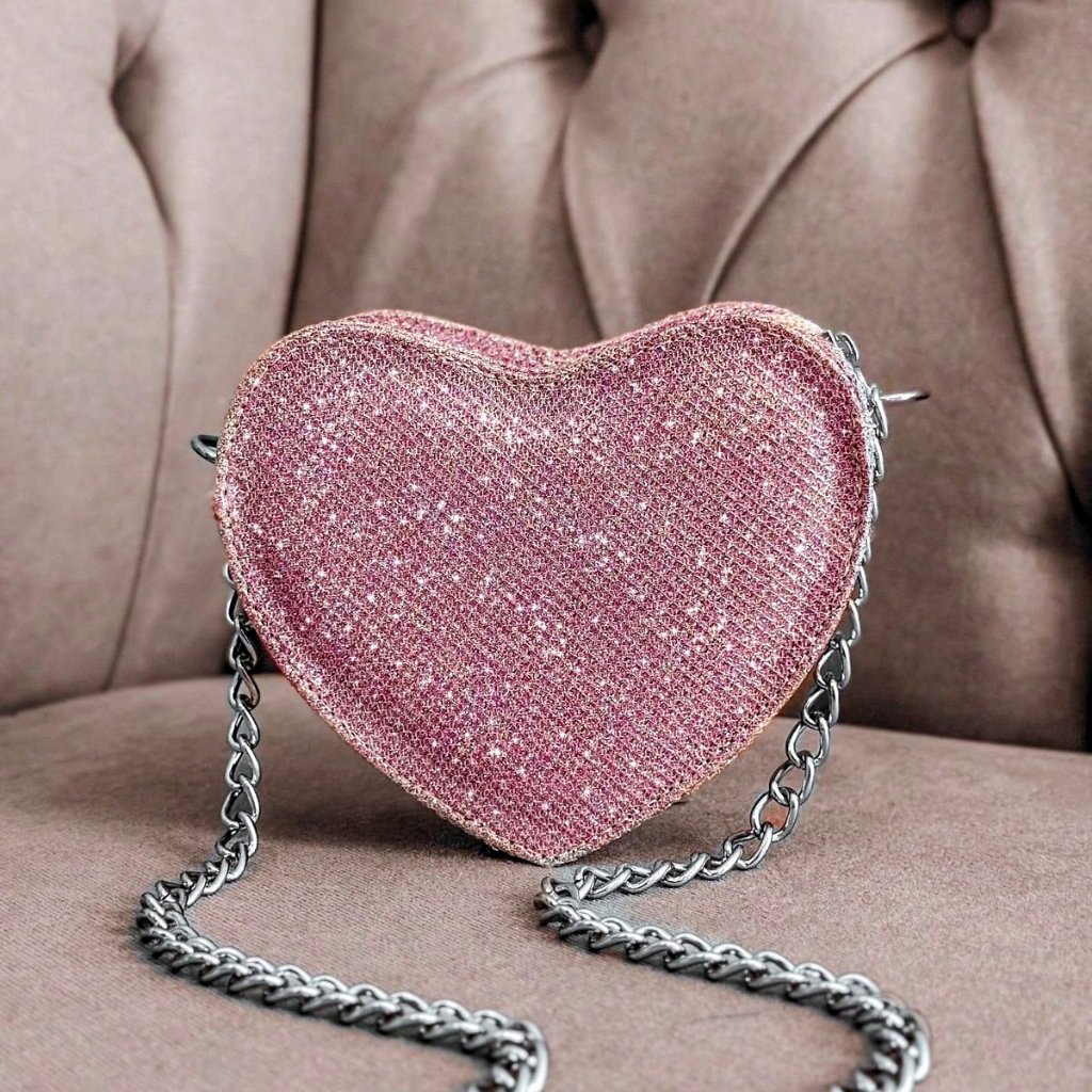 Mini Bolsa Coração Transversal de Festa com Alça de Corrente