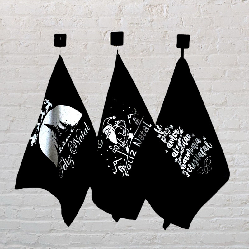 Kit 3 Unidades Pano de Prato Preto - 100% Algodão - GRANDE