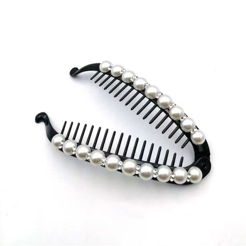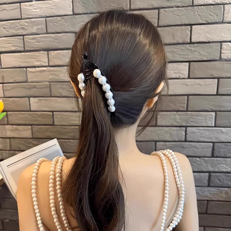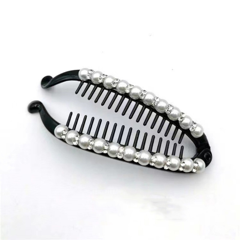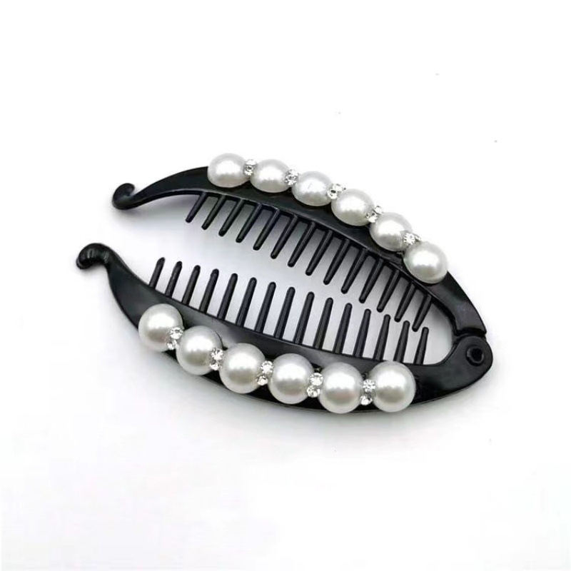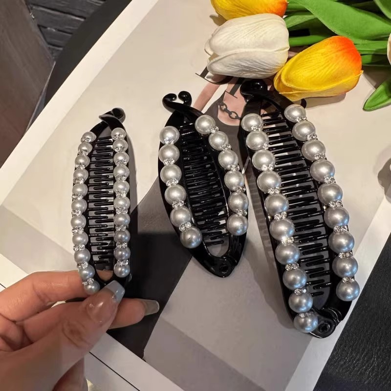 Moda elegante imitação de pérola diamante preto Vertical clipe de cabelo acrílico Banana clipe pente de cabelo feminino