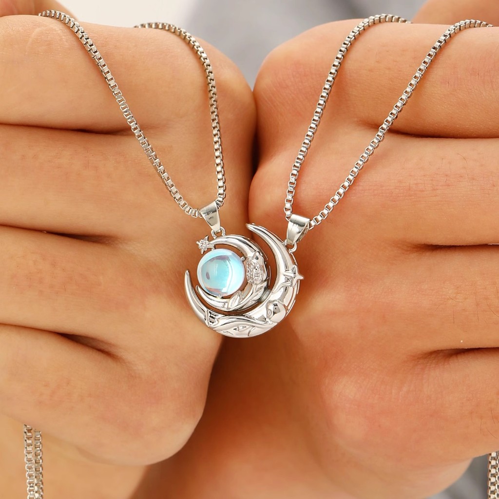 Moda Tendência Sol Lua Casal Projeção Colar Novo Par De Homens E Mulheres Pingente Magnético Clavícula Corrente