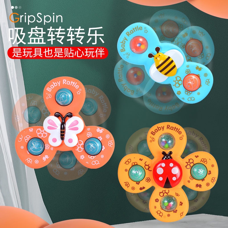 3 Pcs Brinquedo Do Banho Bebê Ventosa Mordedor Spiner Spin Otário Spining Top Spinner Dos Desenhos Animados Brinquedos Para As Crianças