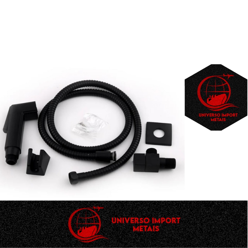 Ducha Higiênica Completa Quadrada Preta Fosco Black Matte Luxo