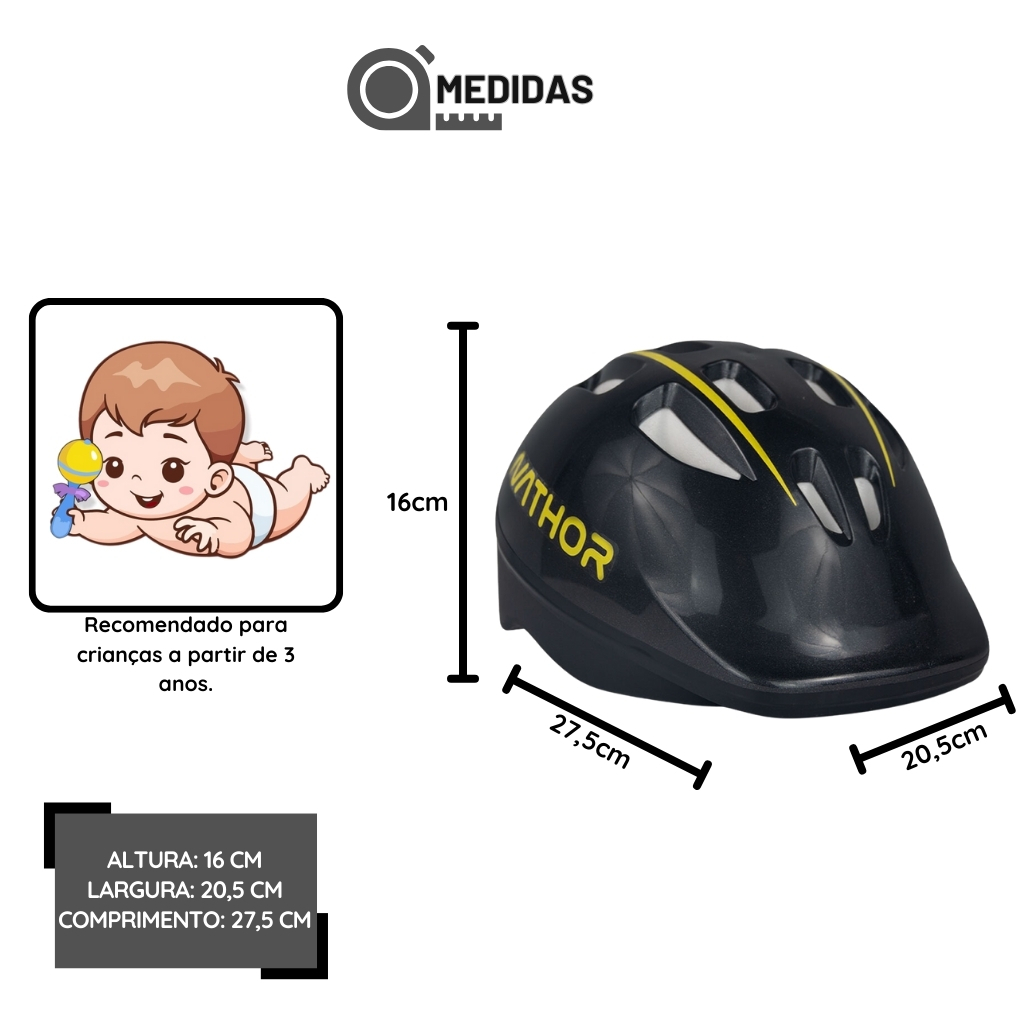 Capacete Infantil Nathor Preto e Amarelo