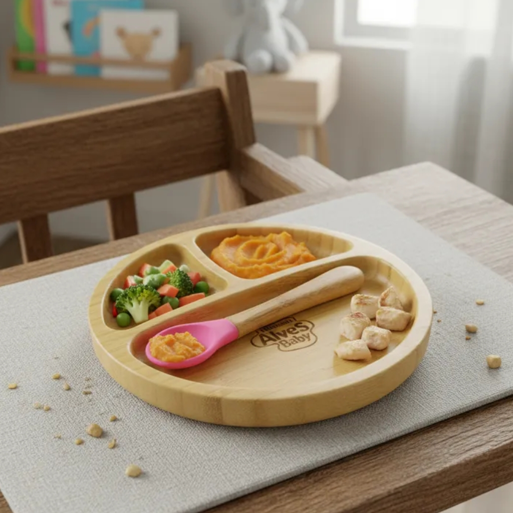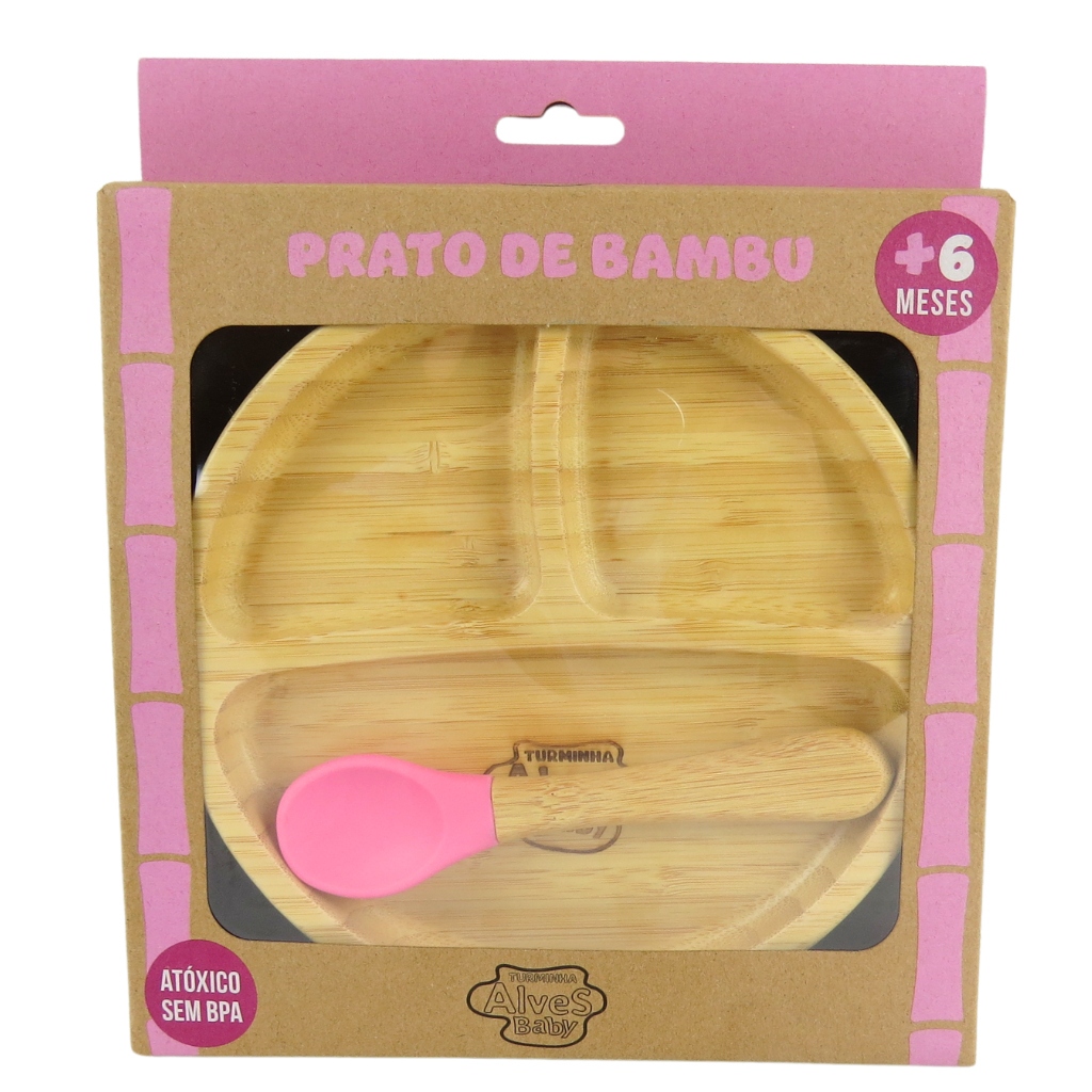 Pratinho Infantil de Bambu Turminha Alves Baby com Ventosa Rosa