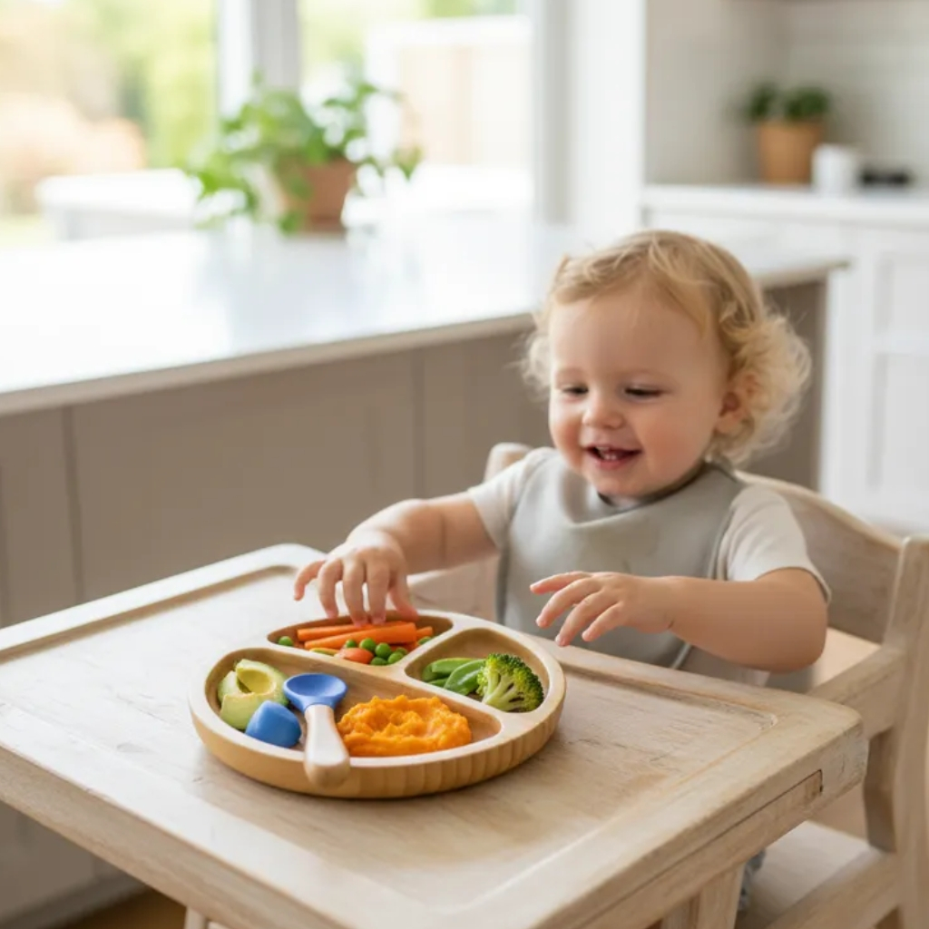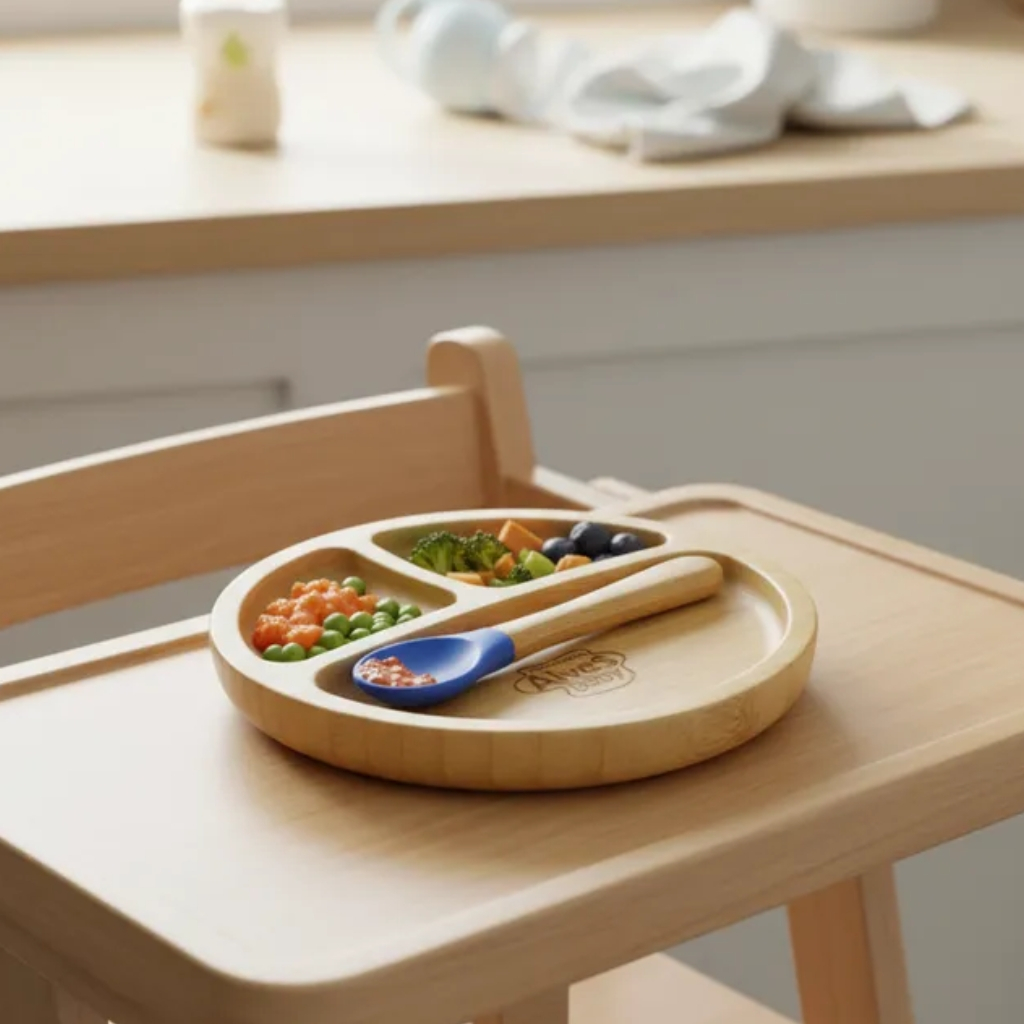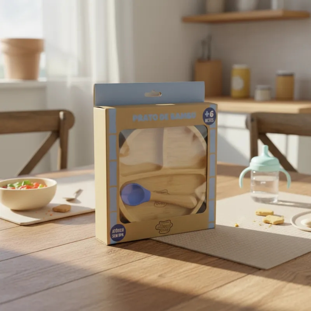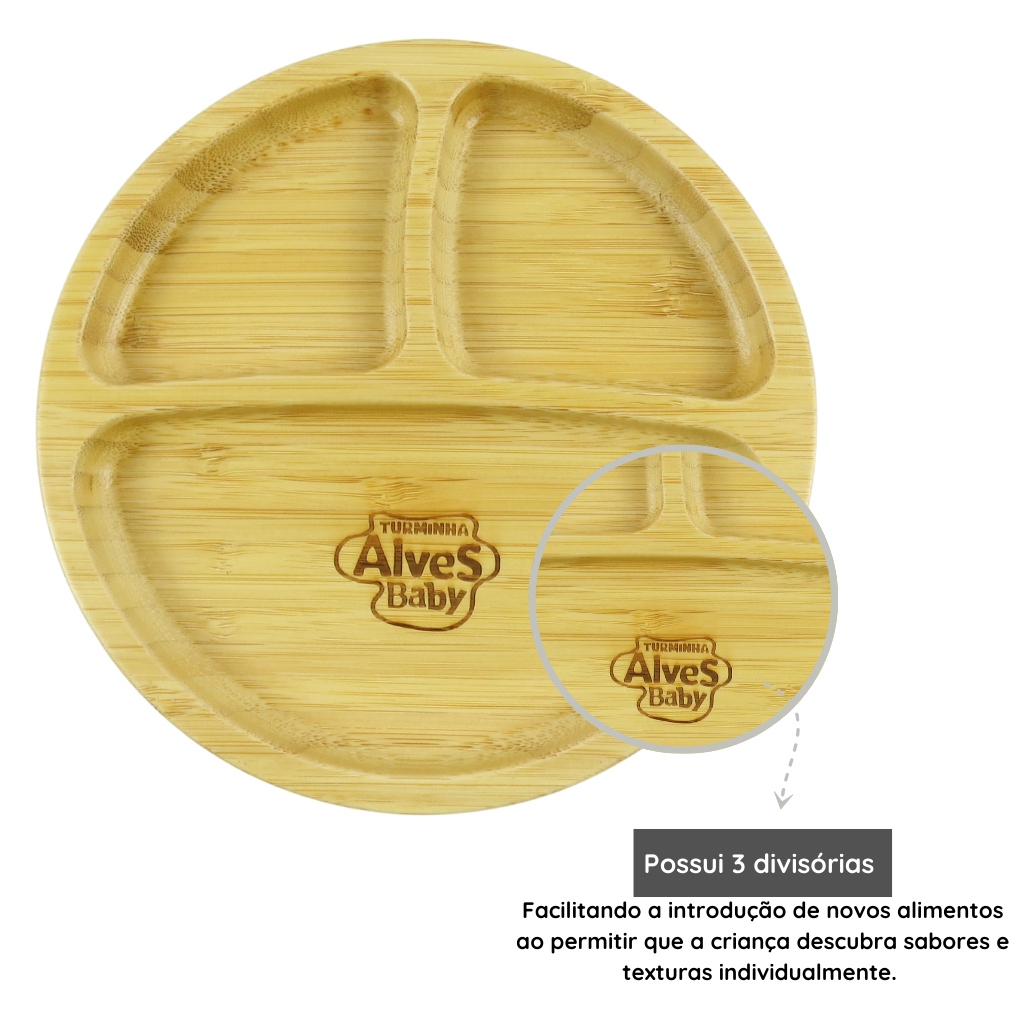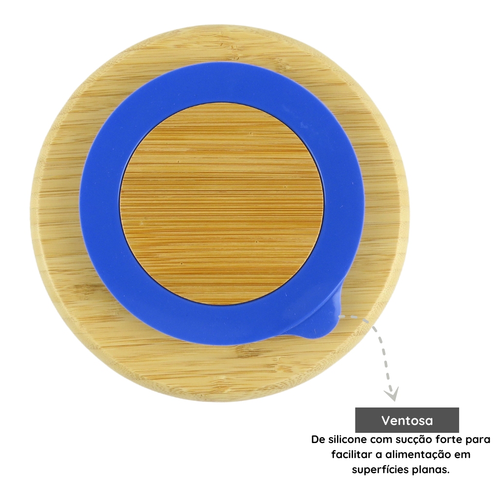Pratinho Infantil de Bambu Turminha Alves Baby com Ventosa Azul