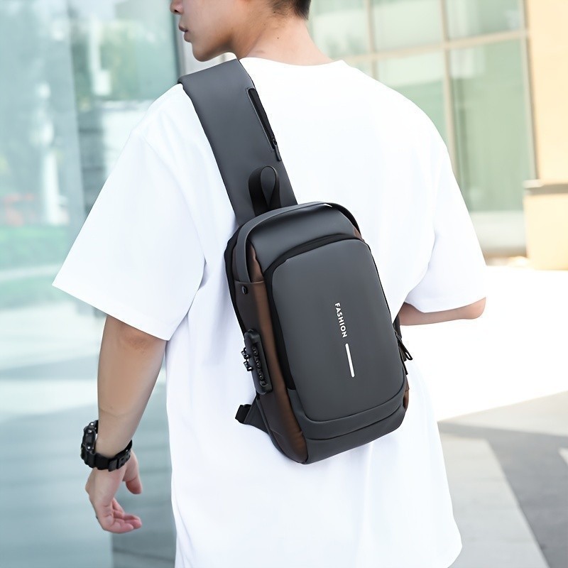 Mochila de Ombro Transversal Compacta Unilateral USB Trava de Código Á prova d'água