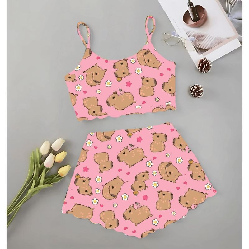 Pijama Personagem Baby Doll Cropped em Suede | Short Doll Confortável