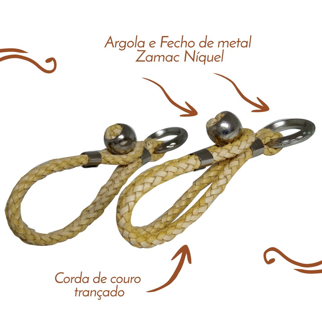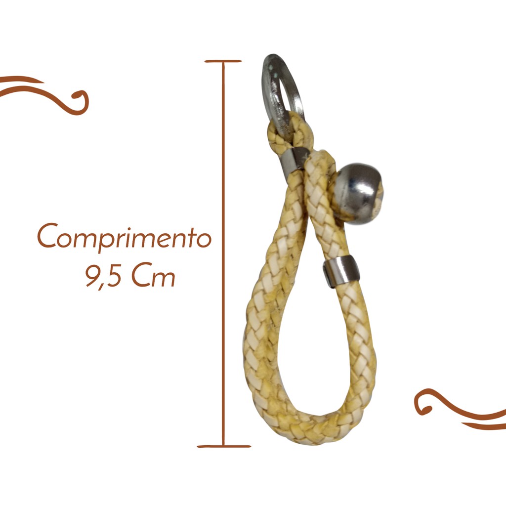 Chaveiro Country Estilo Boiadeiro De Couro Ecológico Bege Trançado Muladeiro