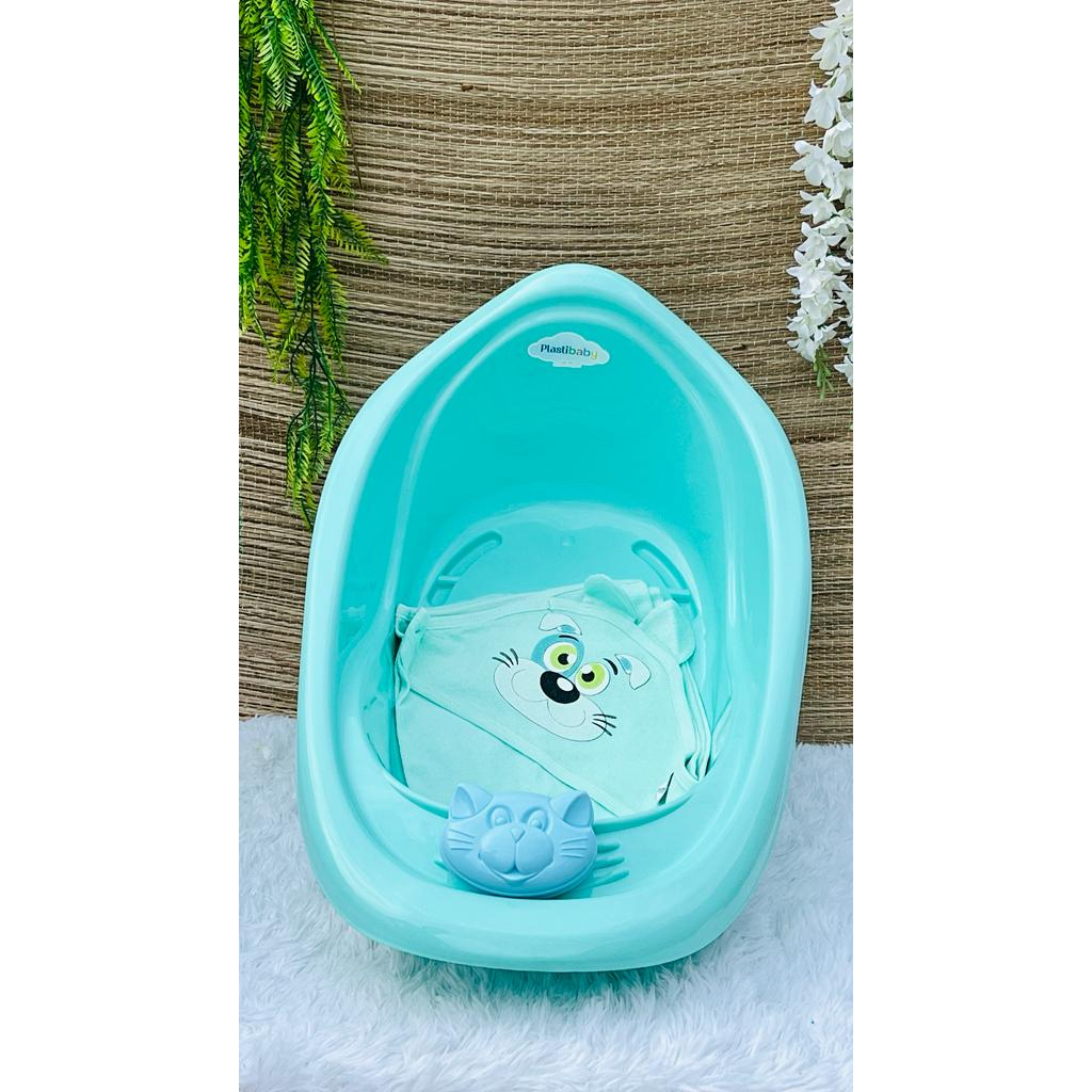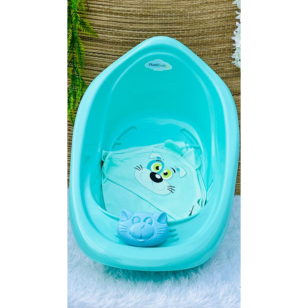 Kit Banheira 22 Litros Plastibaby + Toalha + MENINO