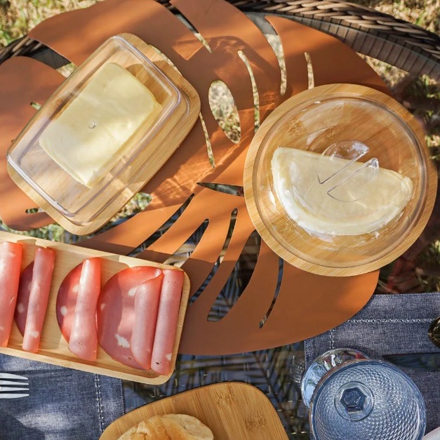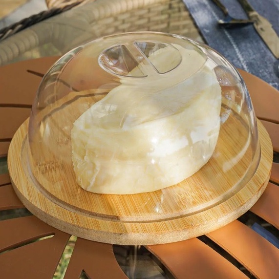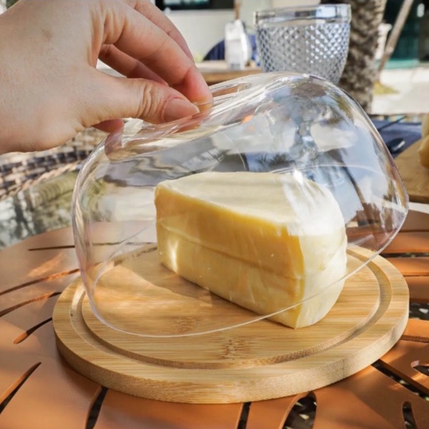 Porta Queijo Queijeira Prato Bambu E Tampa Acrílica Linda