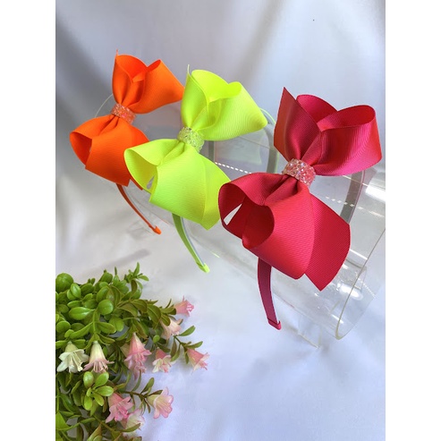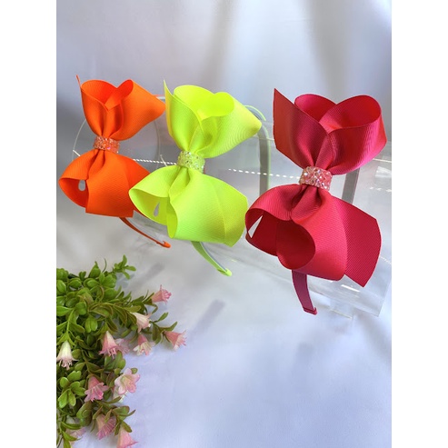 Tiara infantil laço boutique neon