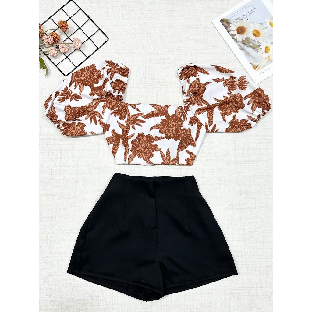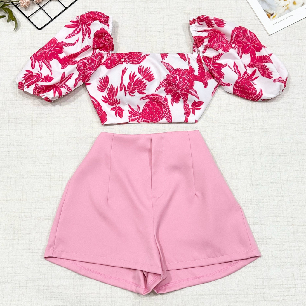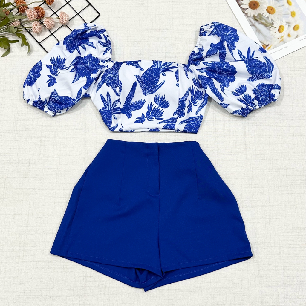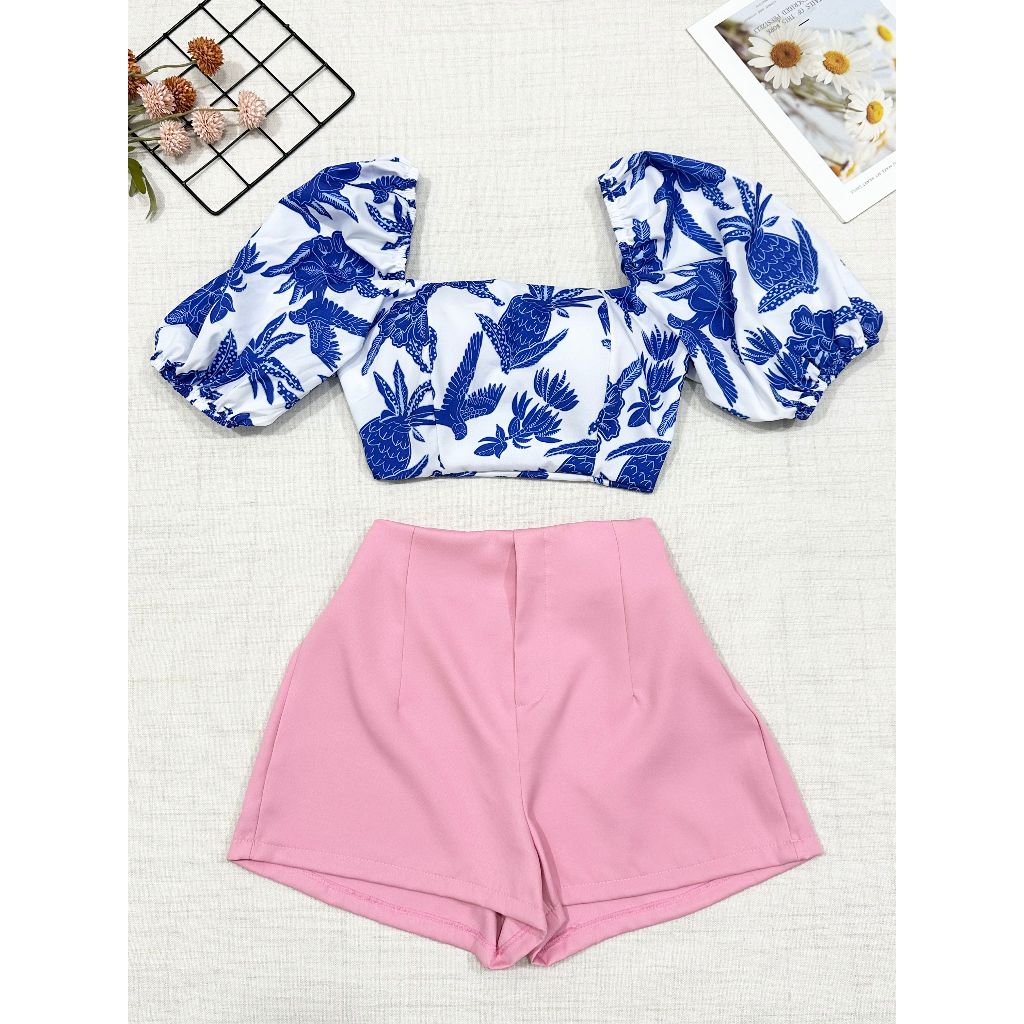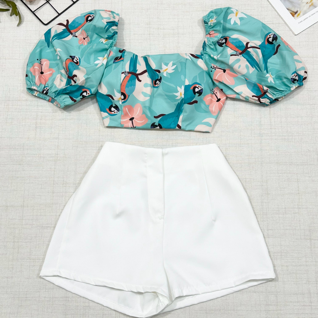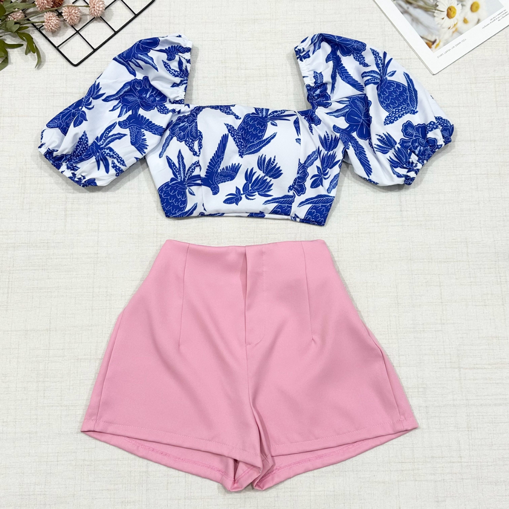 2025Conjunto camisa tamanho unico da pra amarra atras com elastano e com estampa , short com ziper sem bolso