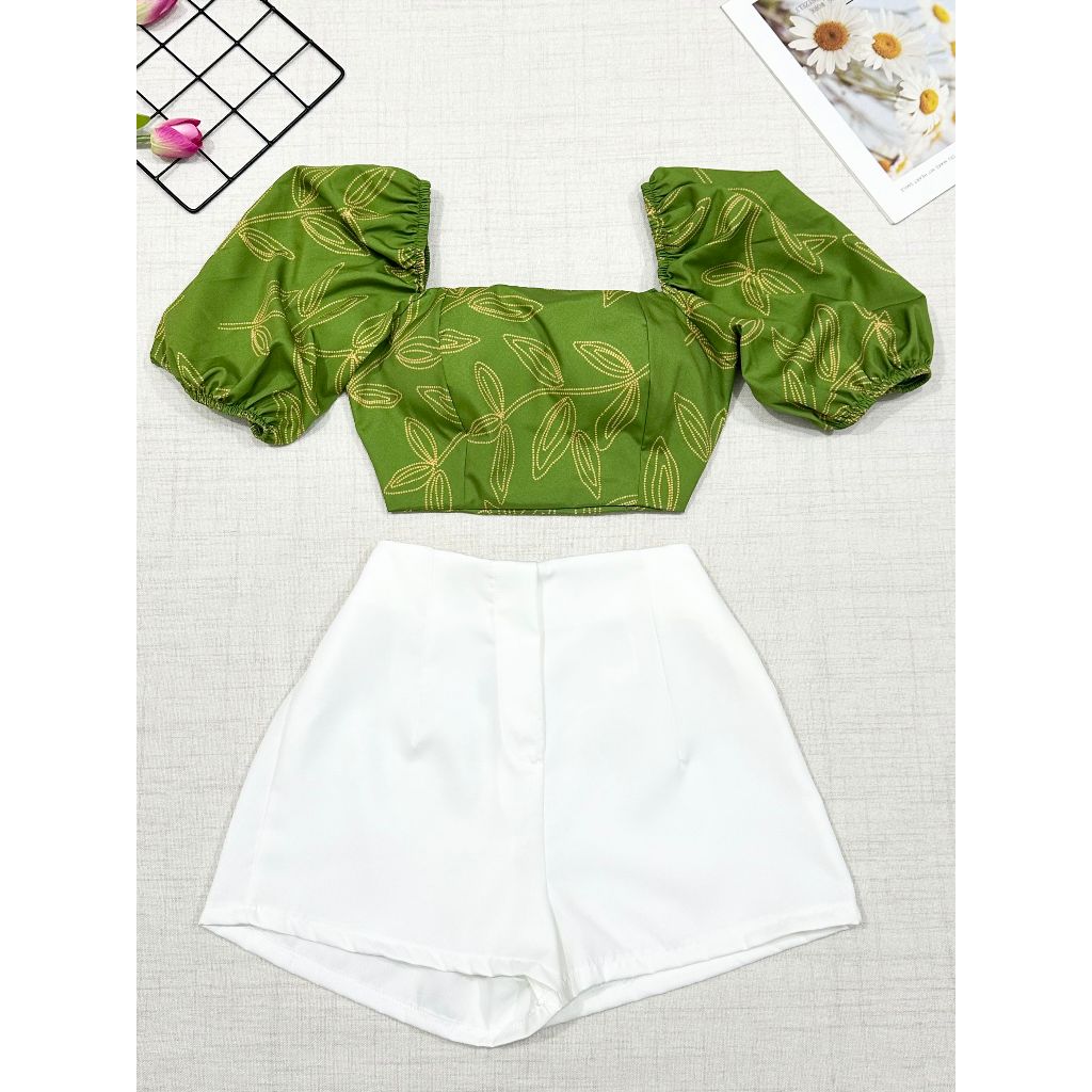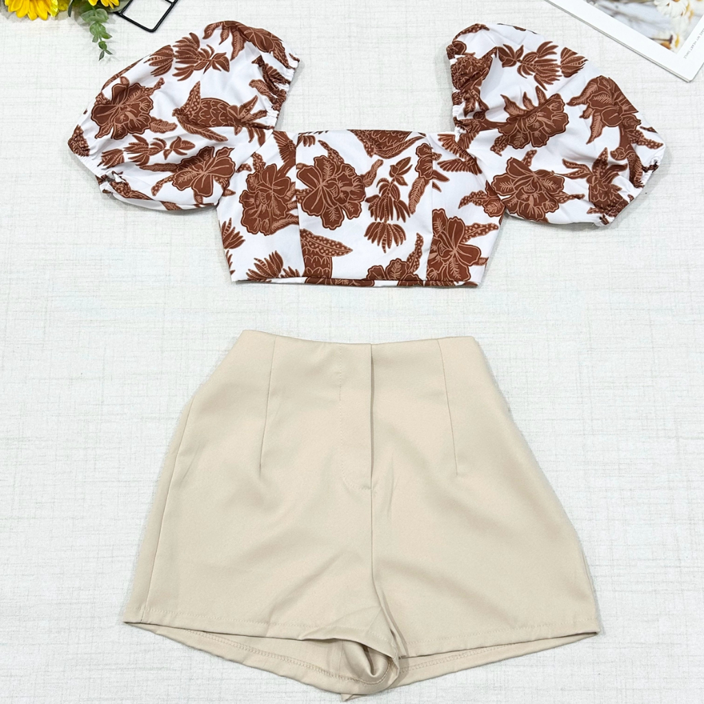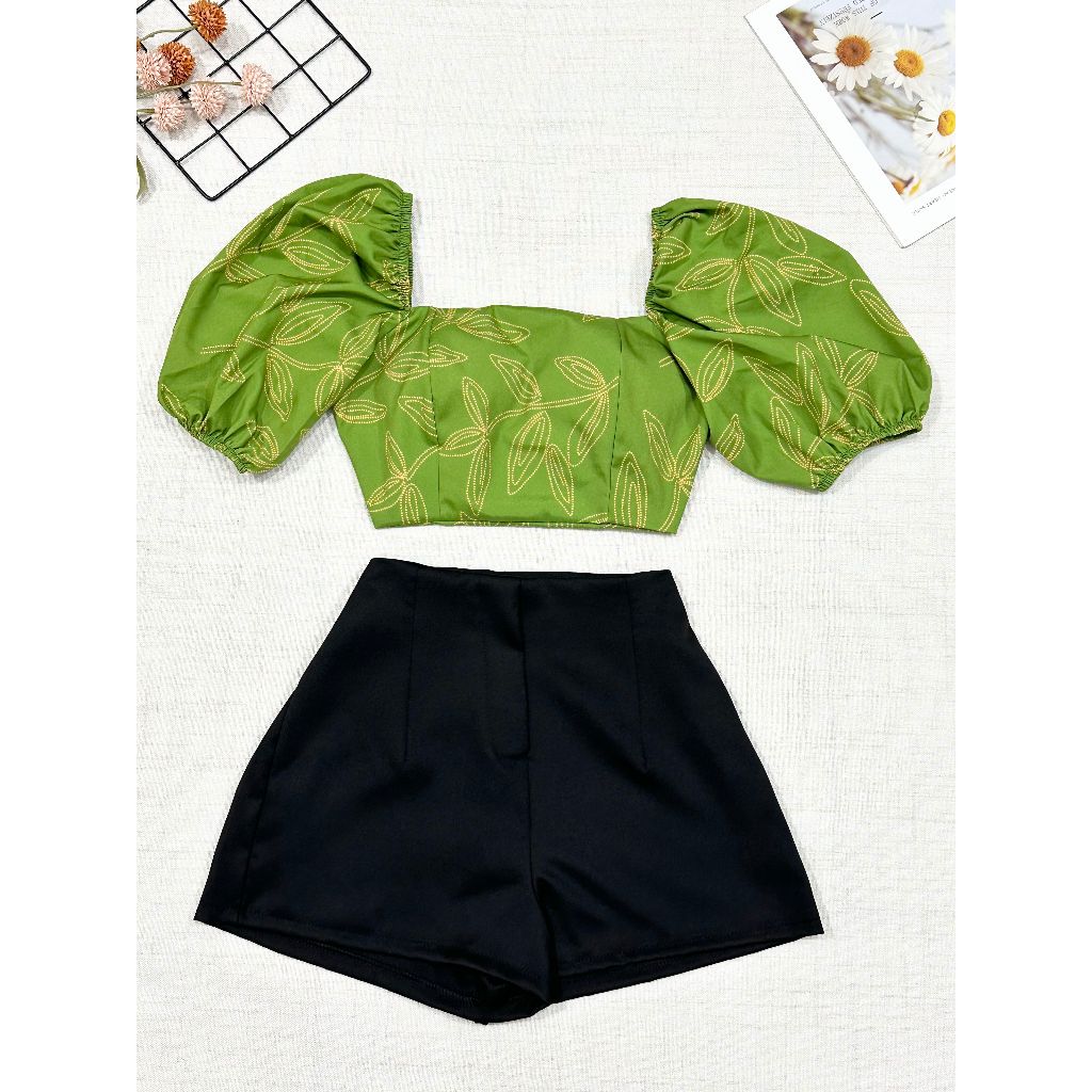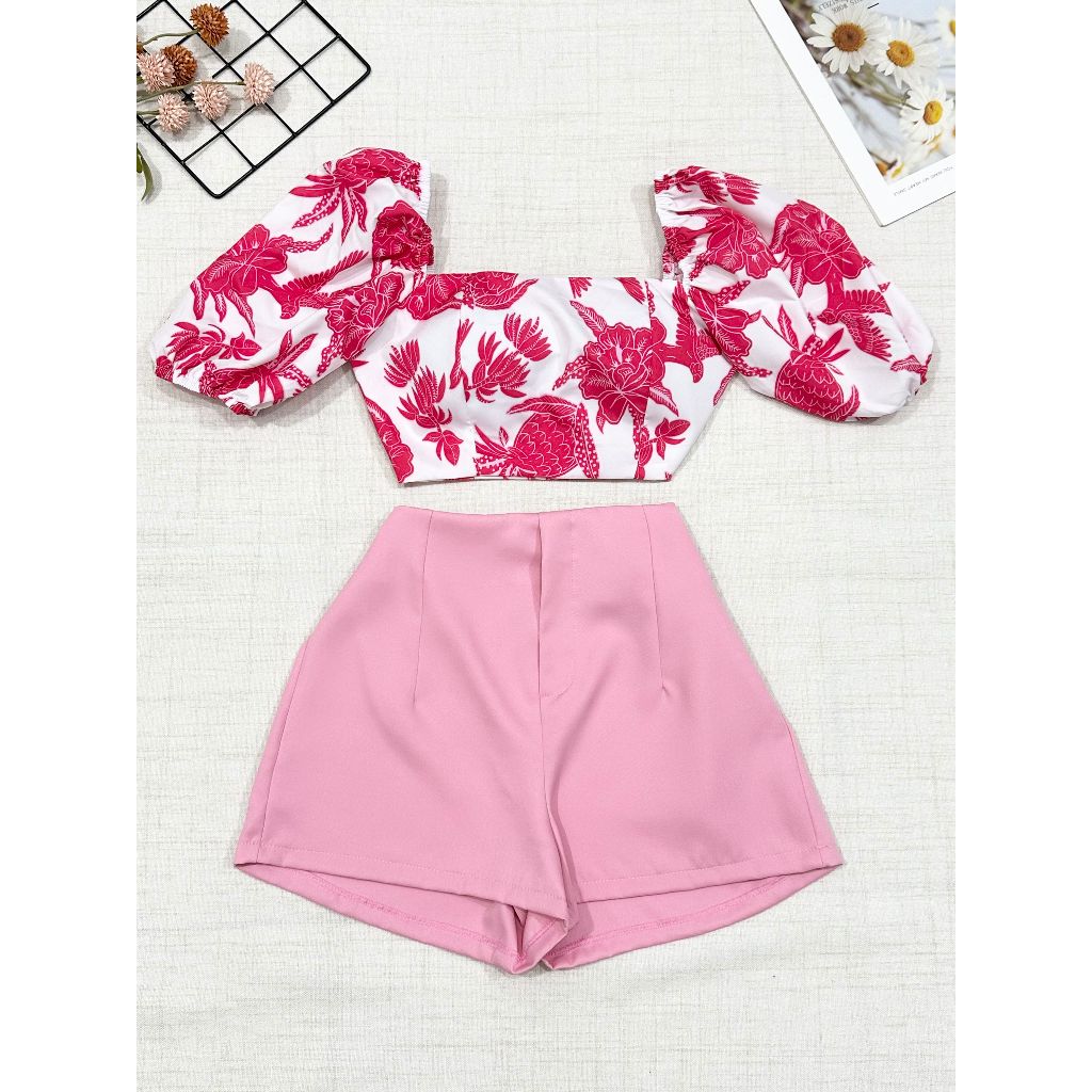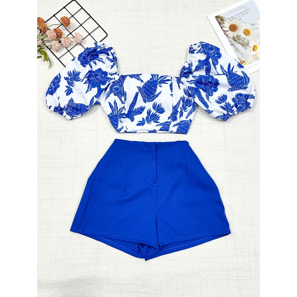 2025Conjunto camisa tamanho unico da pra amarra atras com elastano e com estampa , short com ziper sem bolso