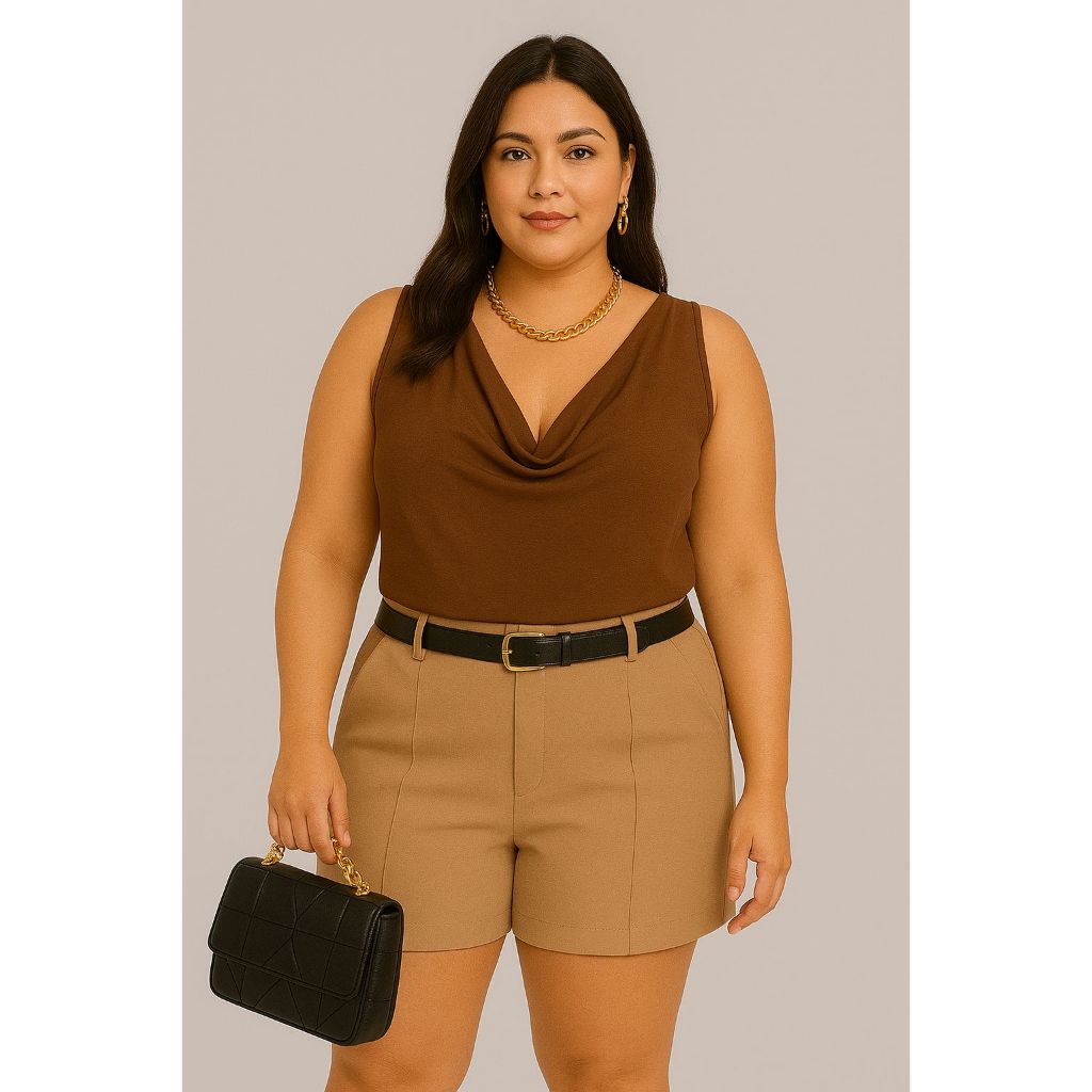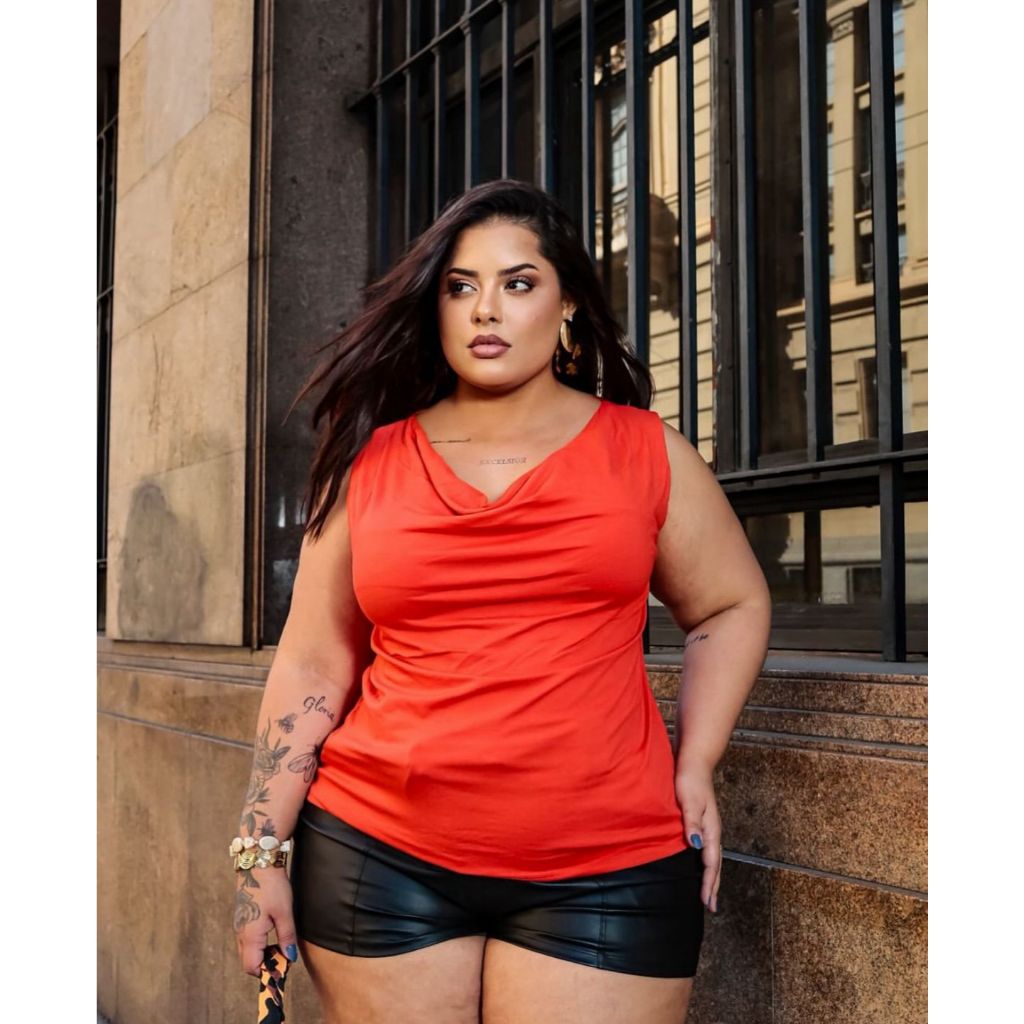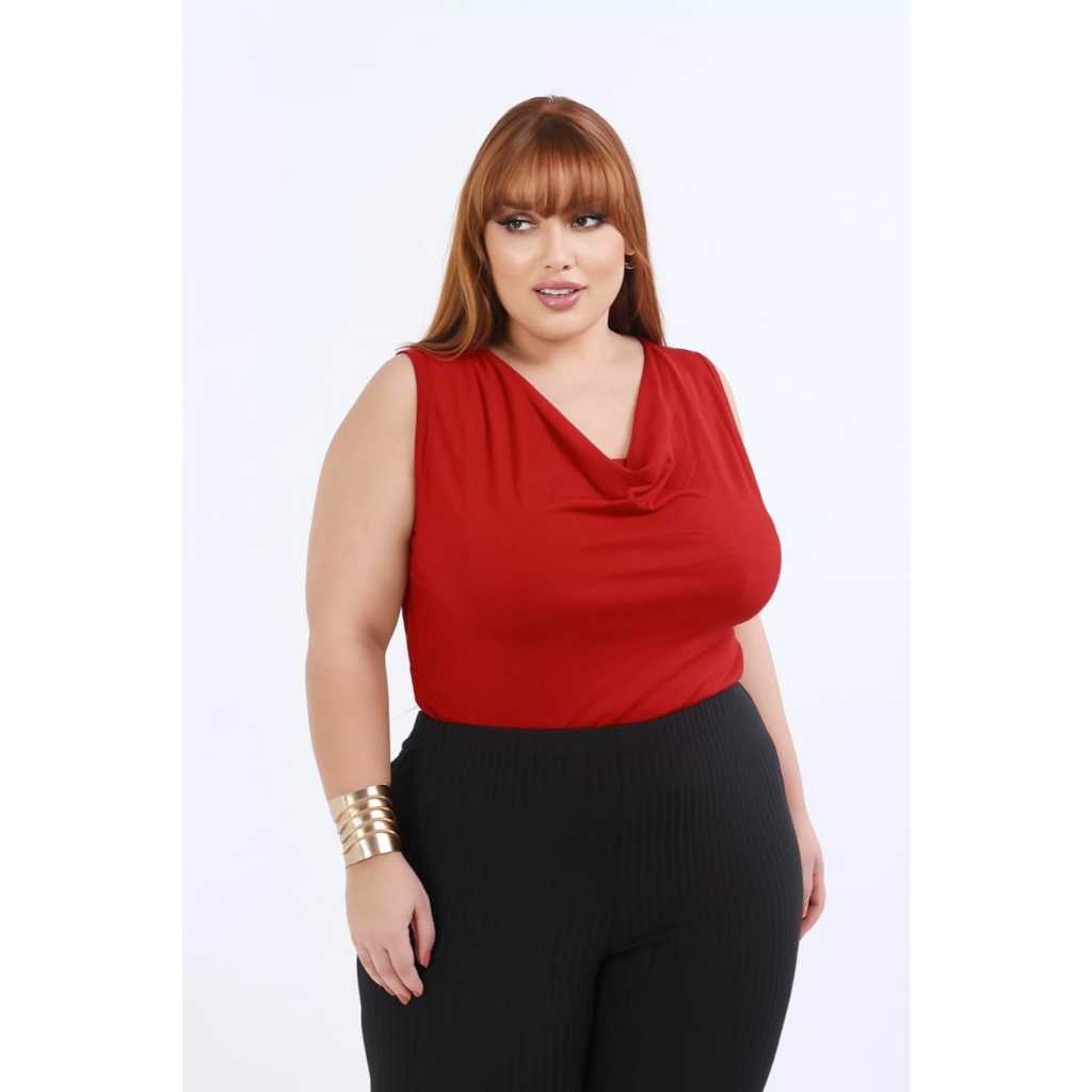 Blusa Regata Gola Fofa Plus Size Malha Viscolycra Soltinha Elegante