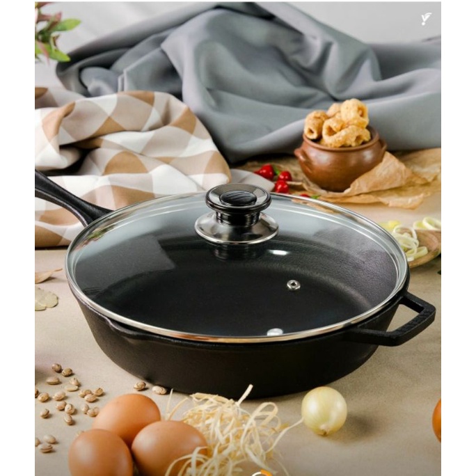Frigideira De Ferro Com Tampa Vidro Lider 26cm Envio Rápido