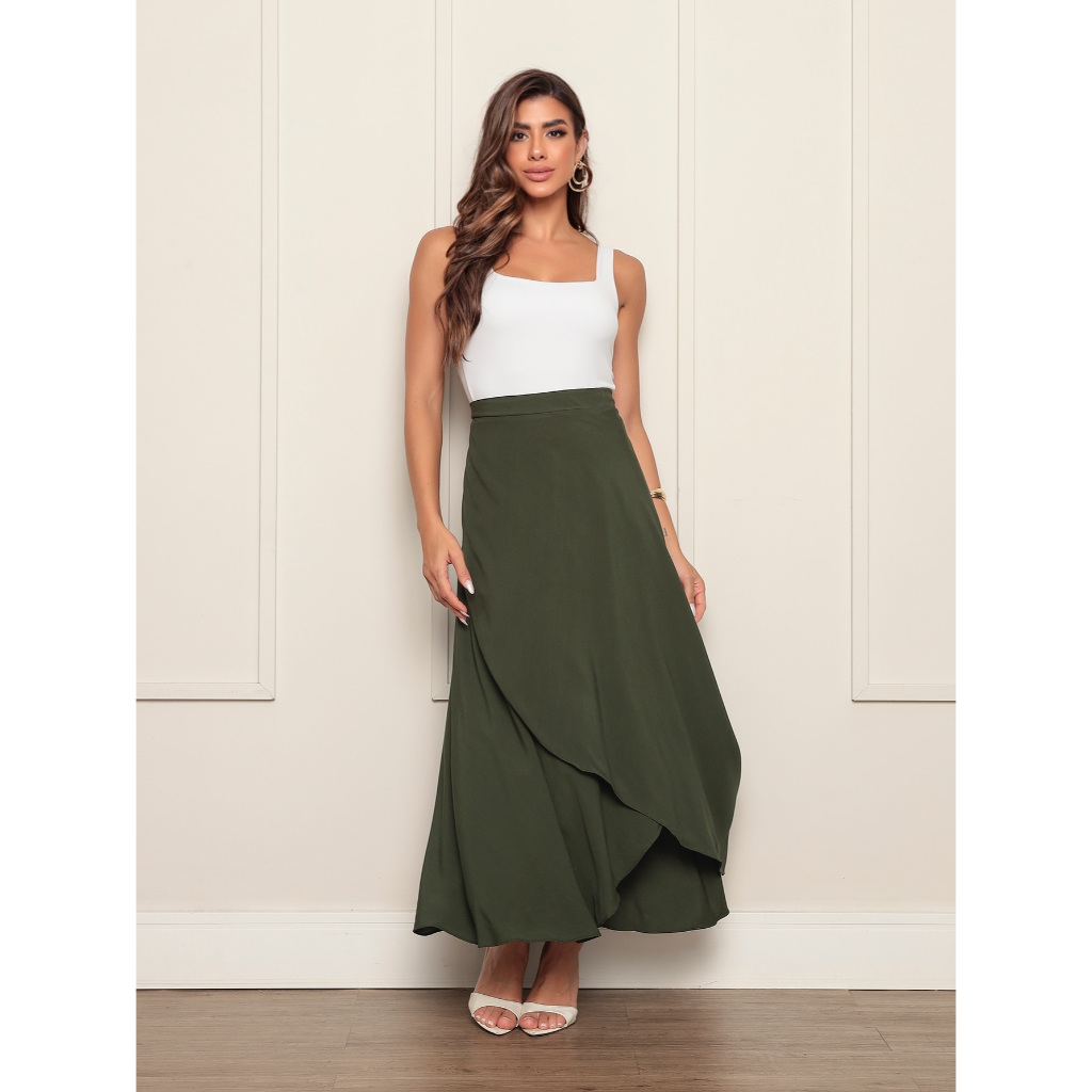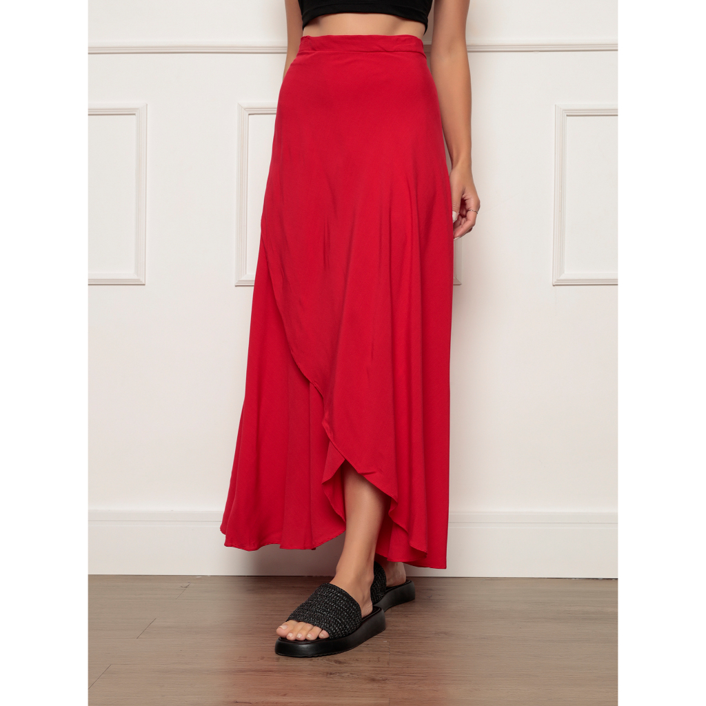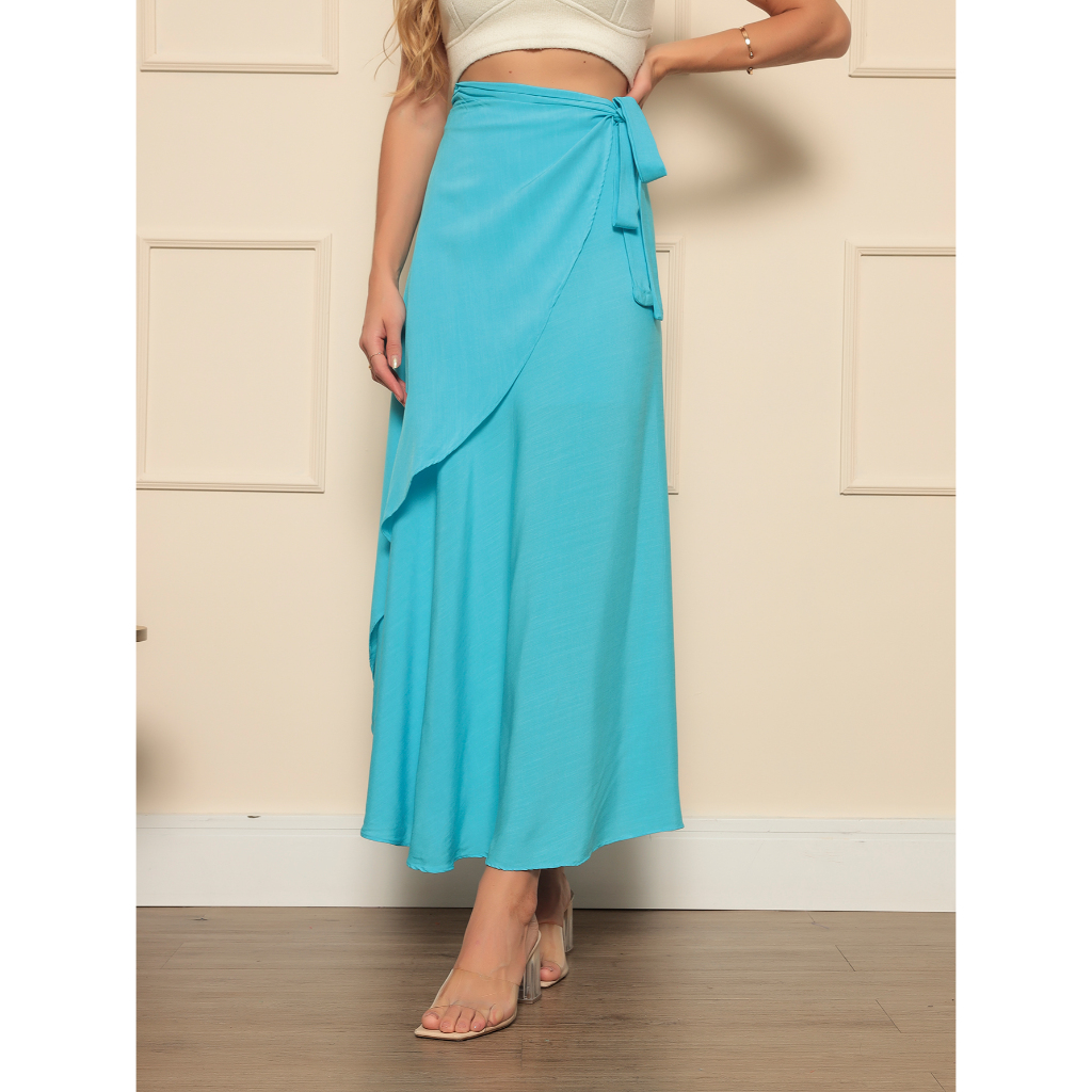 Saia Envelope Maxi Transpassada de Amarrar Moda Blogueira forada