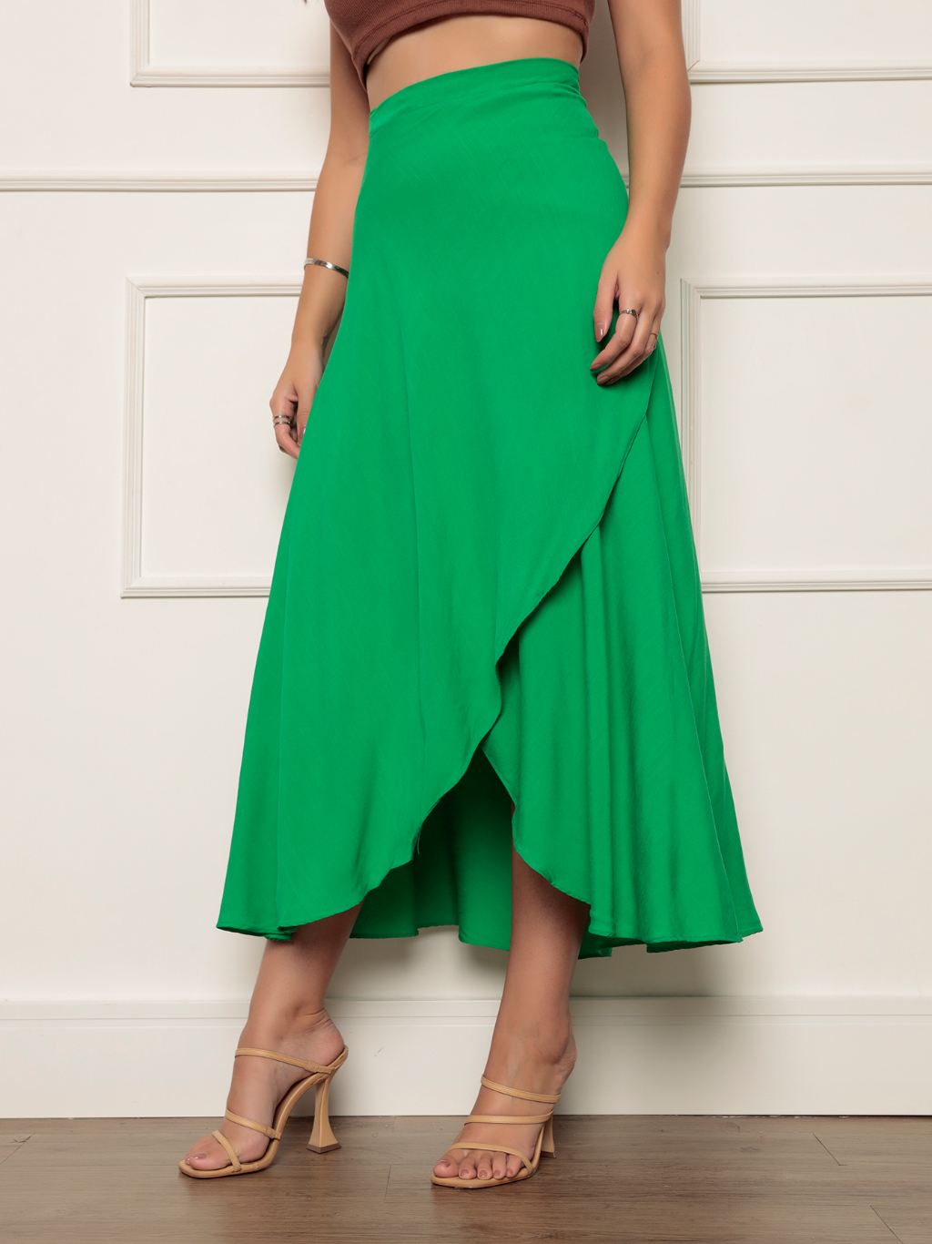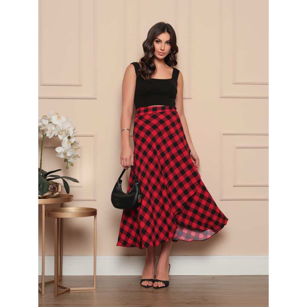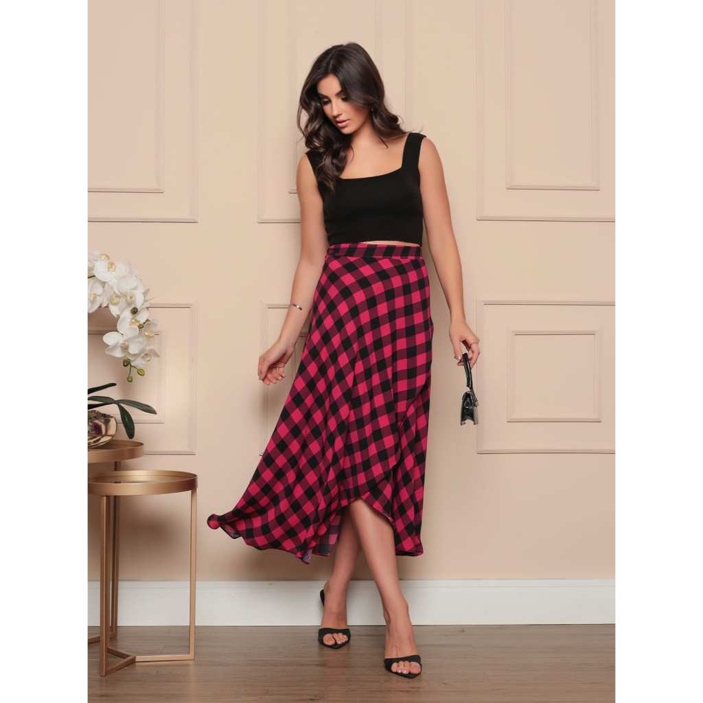 Saia Envelope Maxi Transpassada de Amarrar Moda Blogueira forada