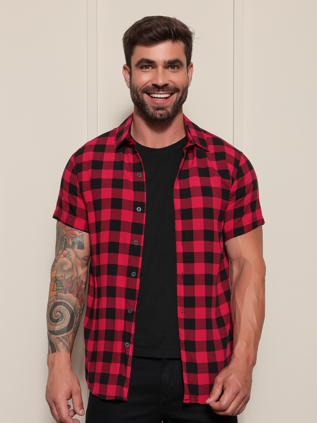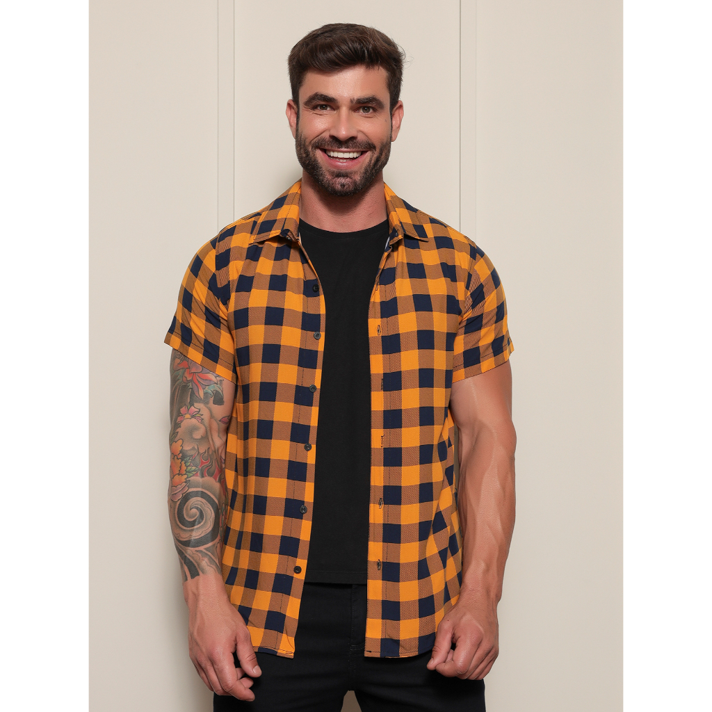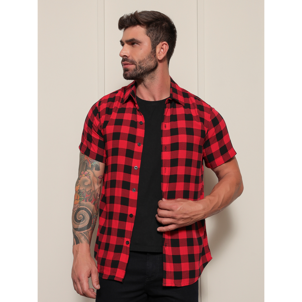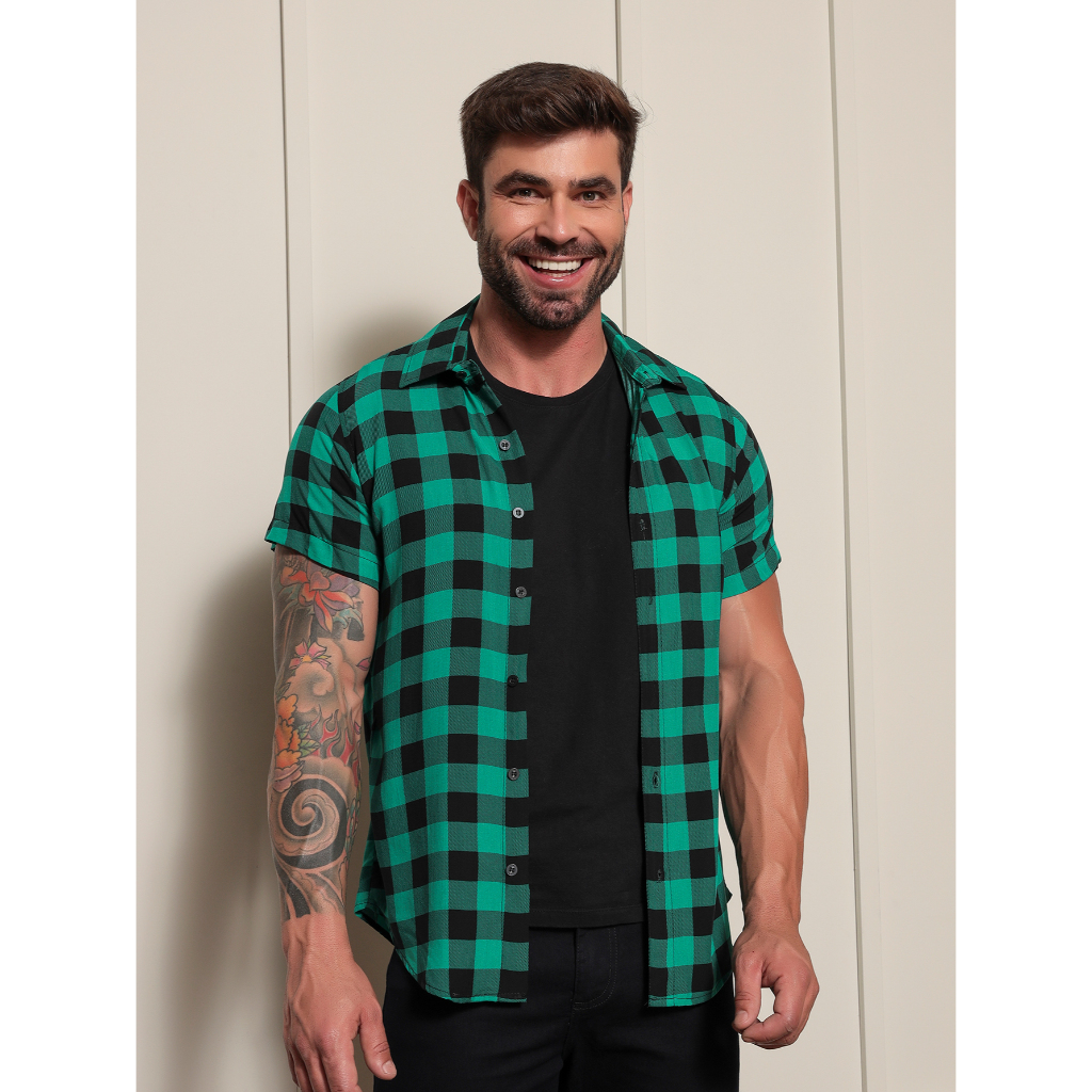 camisa xadrez masculina camisas manga curta viscose masculino colorida