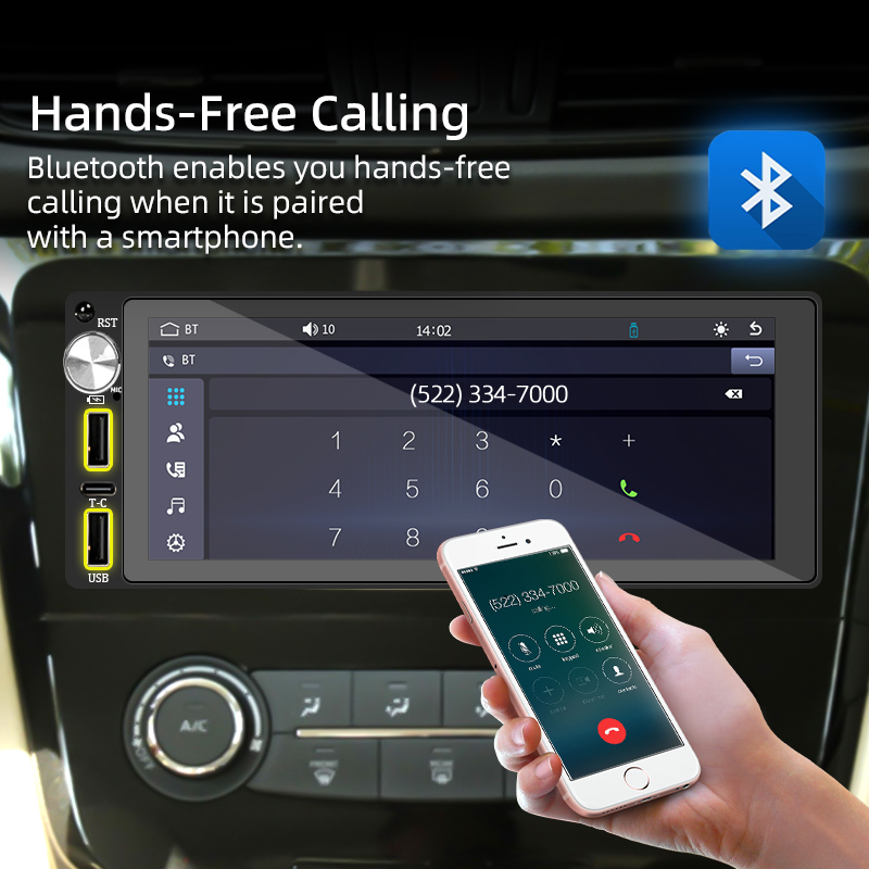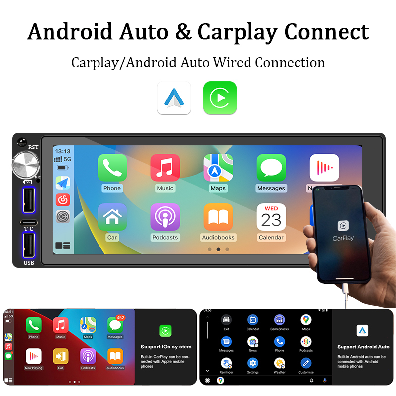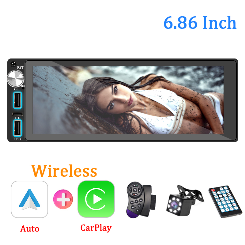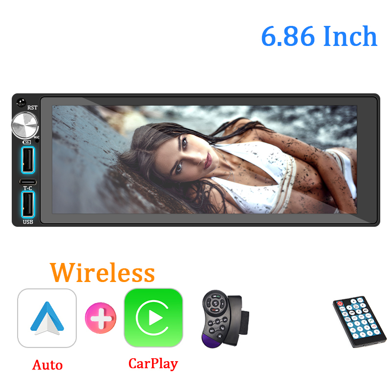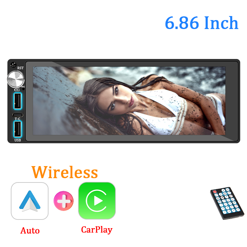 Central Multimídia Carplay Android Automotivo MP5 1 Din Bluetooth Portas USB Tipo C De 6,86 Polegadas Mirrorlink
