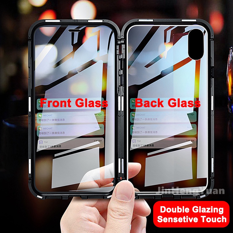 Para IPhone 17 17Air 16 15 14 Plus 13 12 11 Pro Max Capa De Vidro Dupla Face Quadro De Metal Magnético Caso Protetor Emb