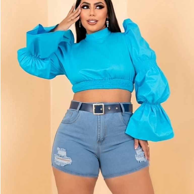 Short jeans Plus Size Hot-Paint C/ Lycra + Cinto exclusivo