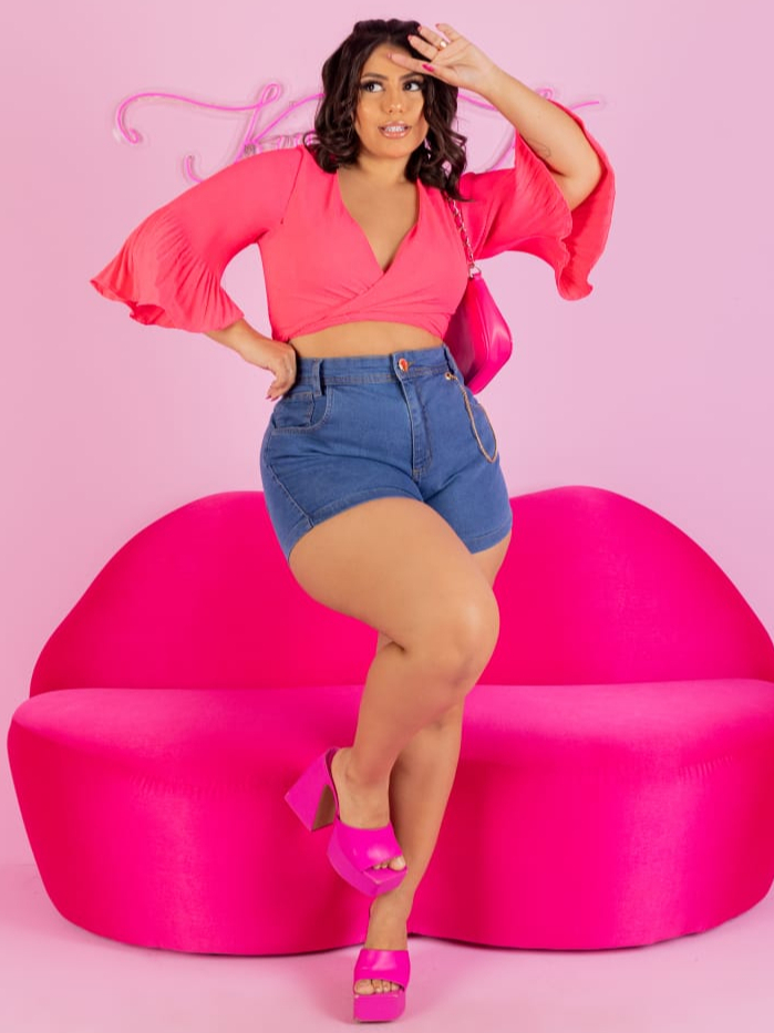 Short jeans Feminino Plus Size c/ Lycra Biju incluso