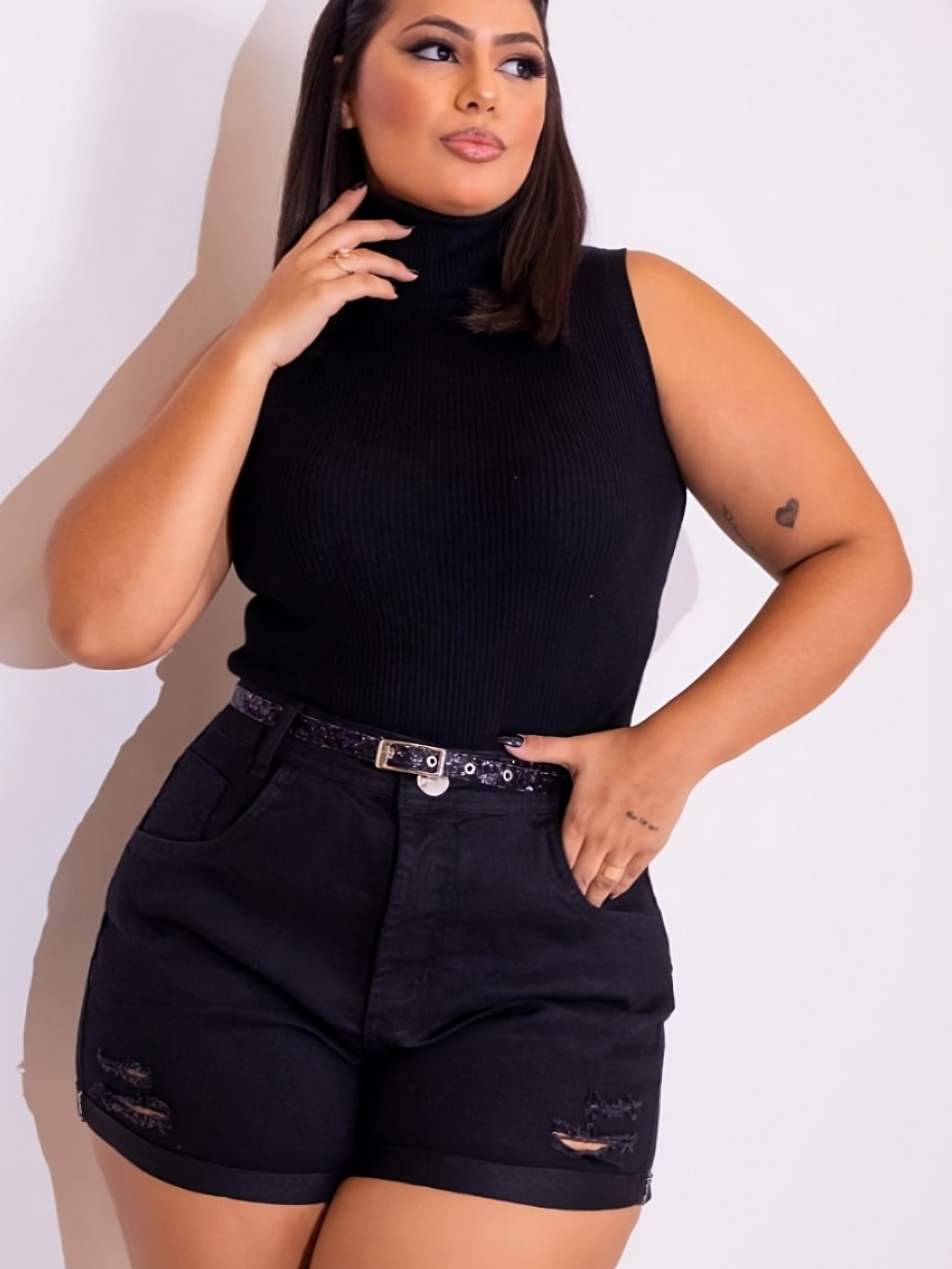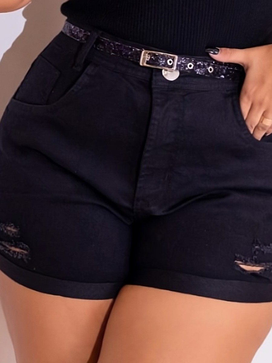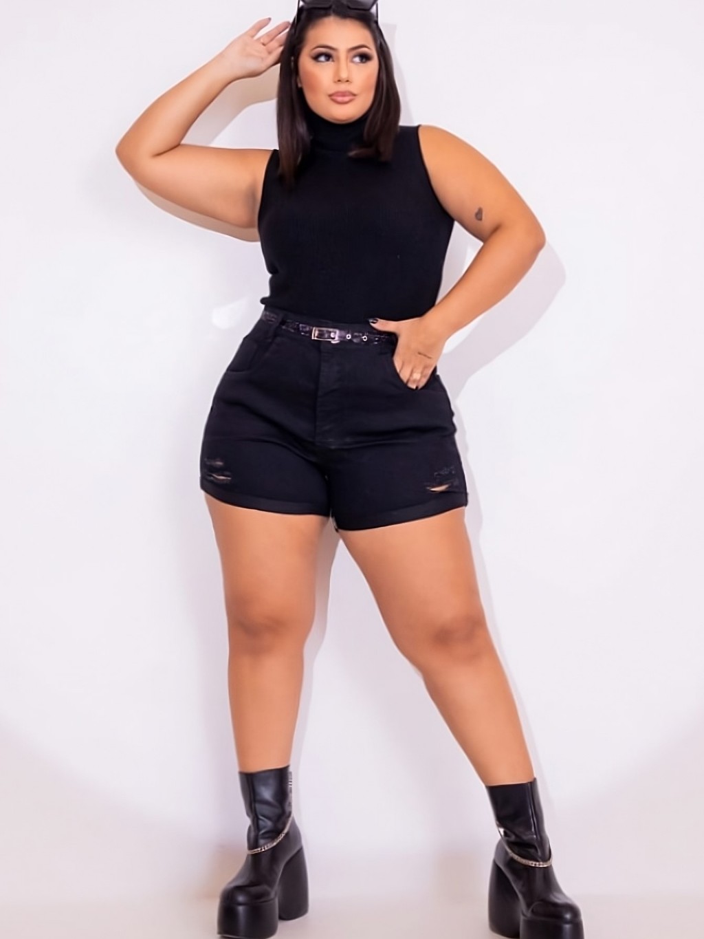 Short jeans Feminino Plus Size C/ Laycra + Cinto com Glitter