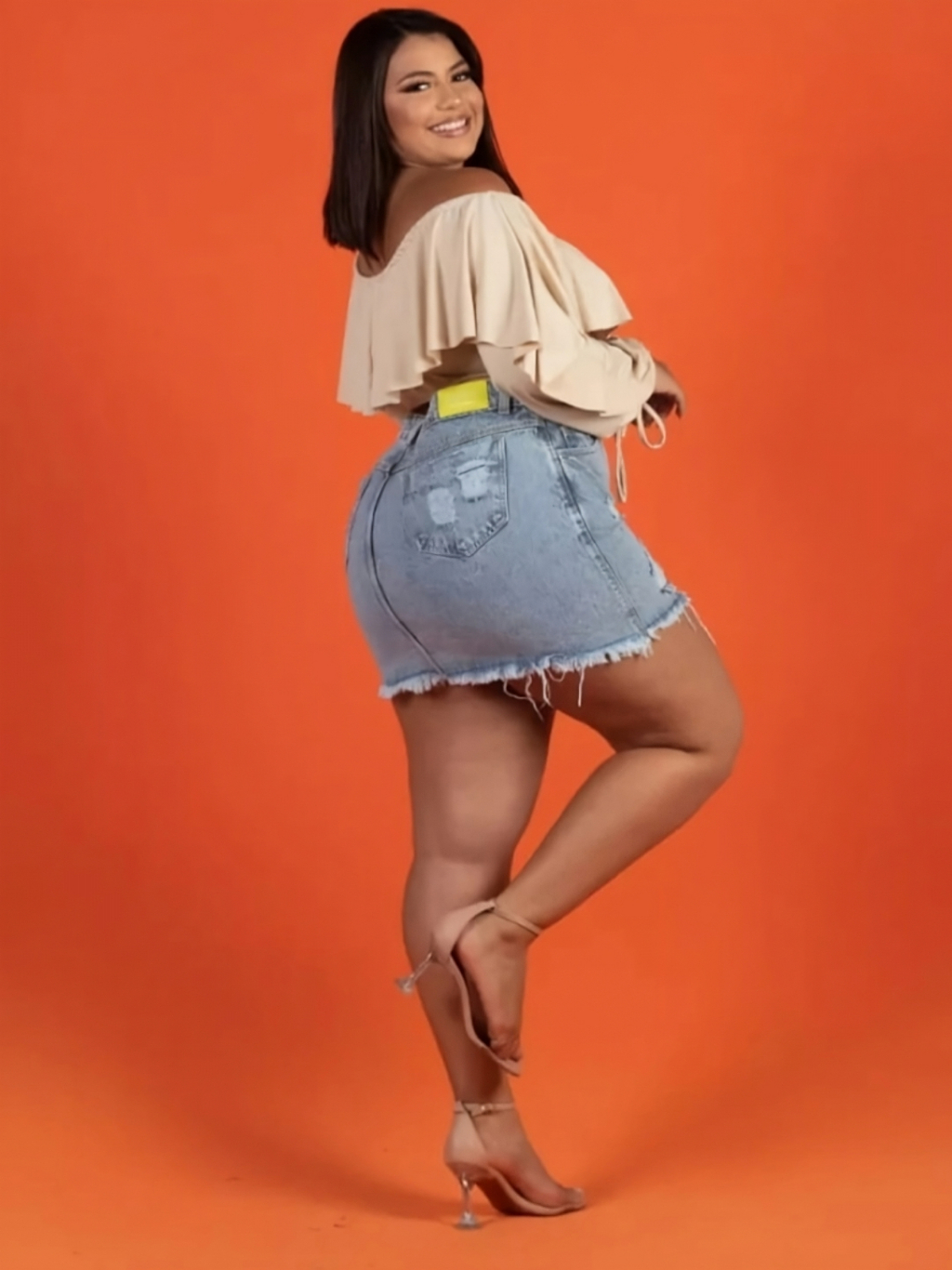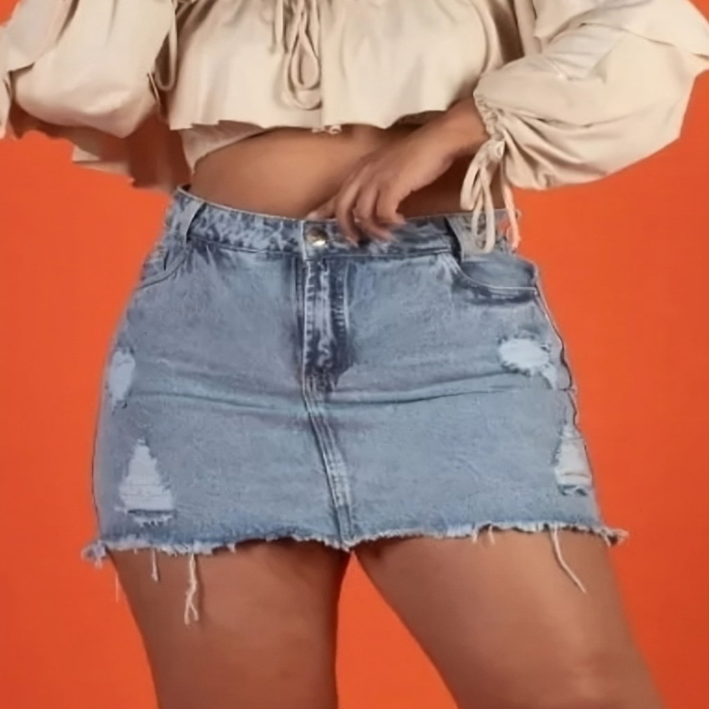 Saia jeans Plus Size Hot-Paint Barra Desfiada