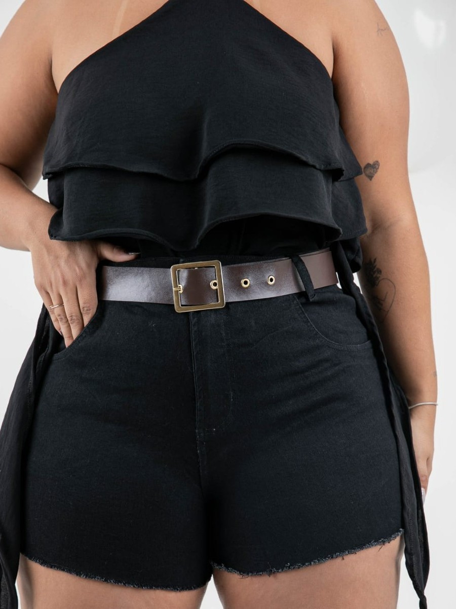 Short jeans Plus Size Hot-Paint c/ Laycra + Cinto exclusivo