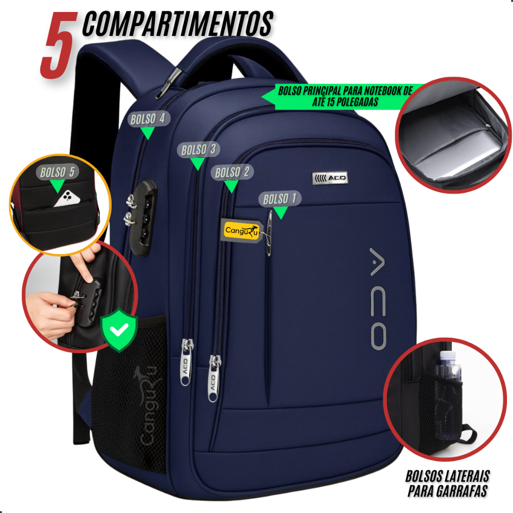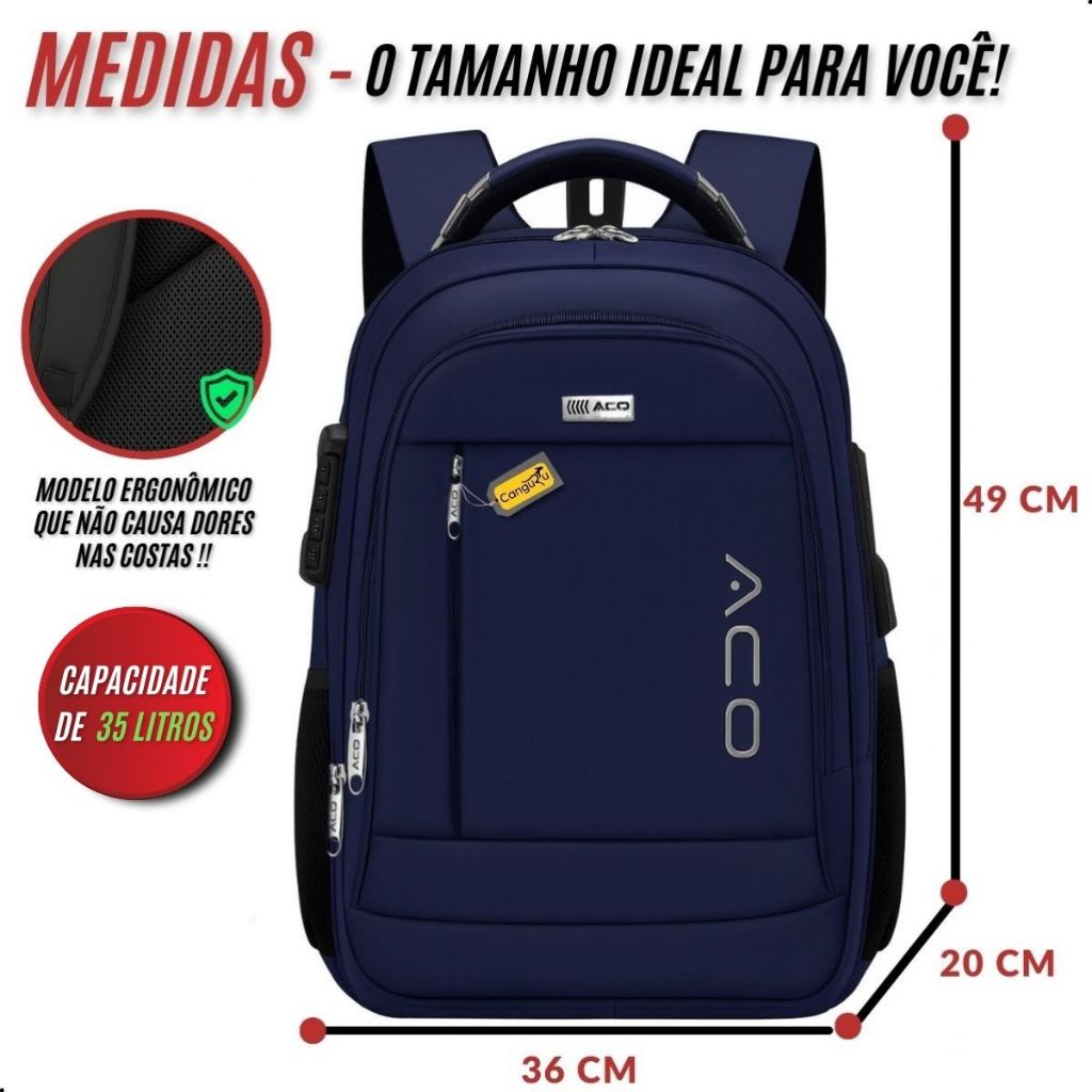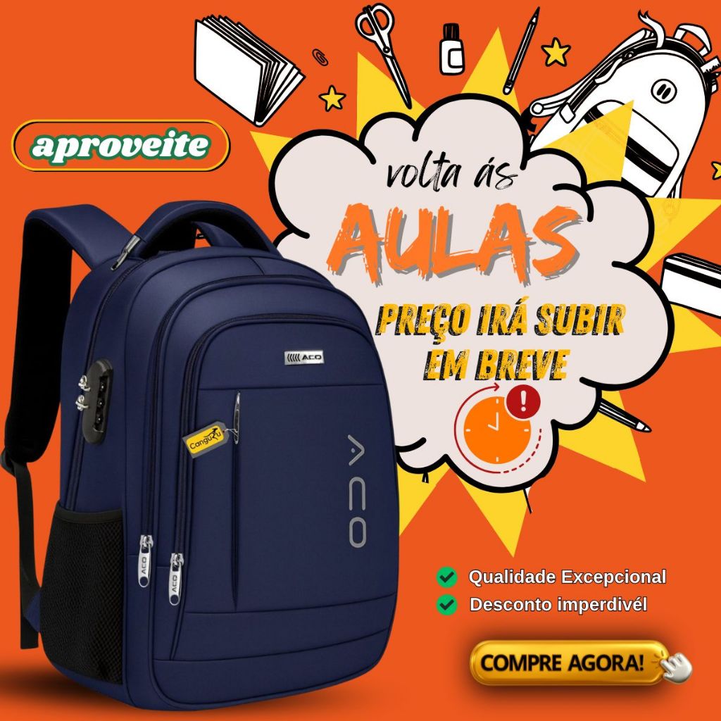 Mochila Reforçada Masculina Feminina Cadeado Trabalho Escola Faculdade Viagem Resistente Saída USB